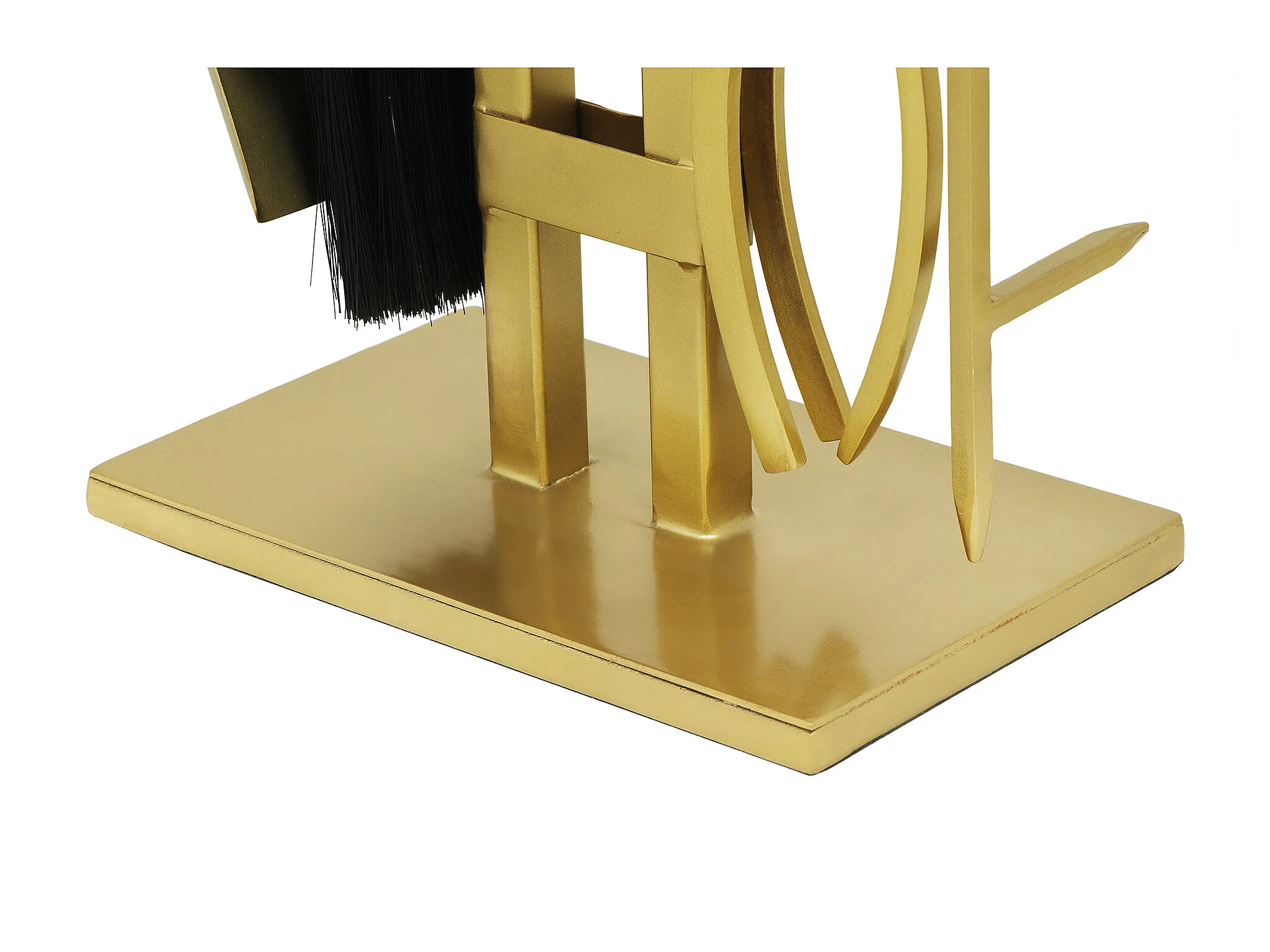Serviteur de cheminée 4 outils en laiton doré - L. 25 x P. 15 x H. 60 cm - ASSIOUT