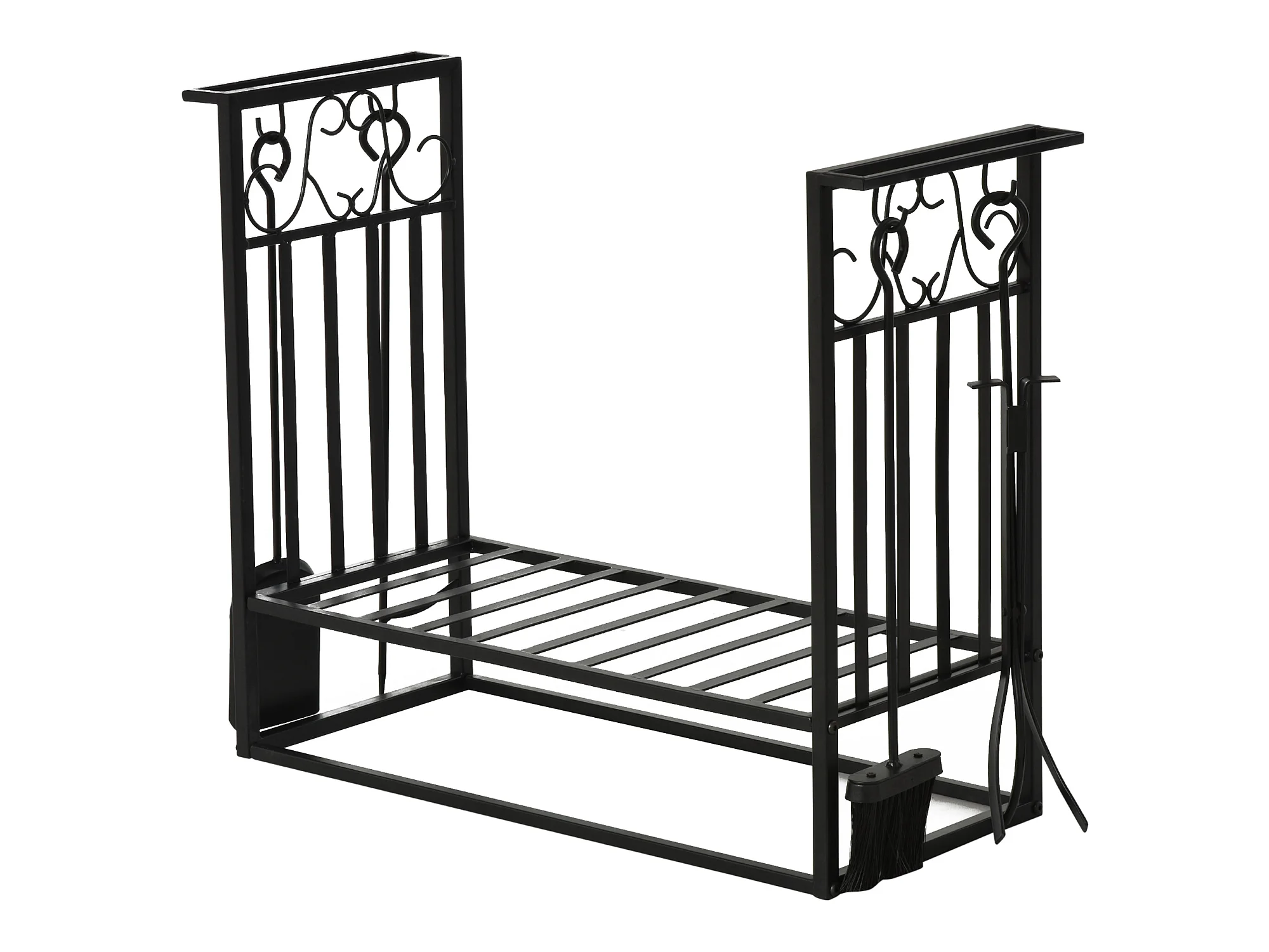 Serviteur de cheminée - porte bûches - range bûches multi accessoires étagère 46L x 30l x 76H cm acier noir