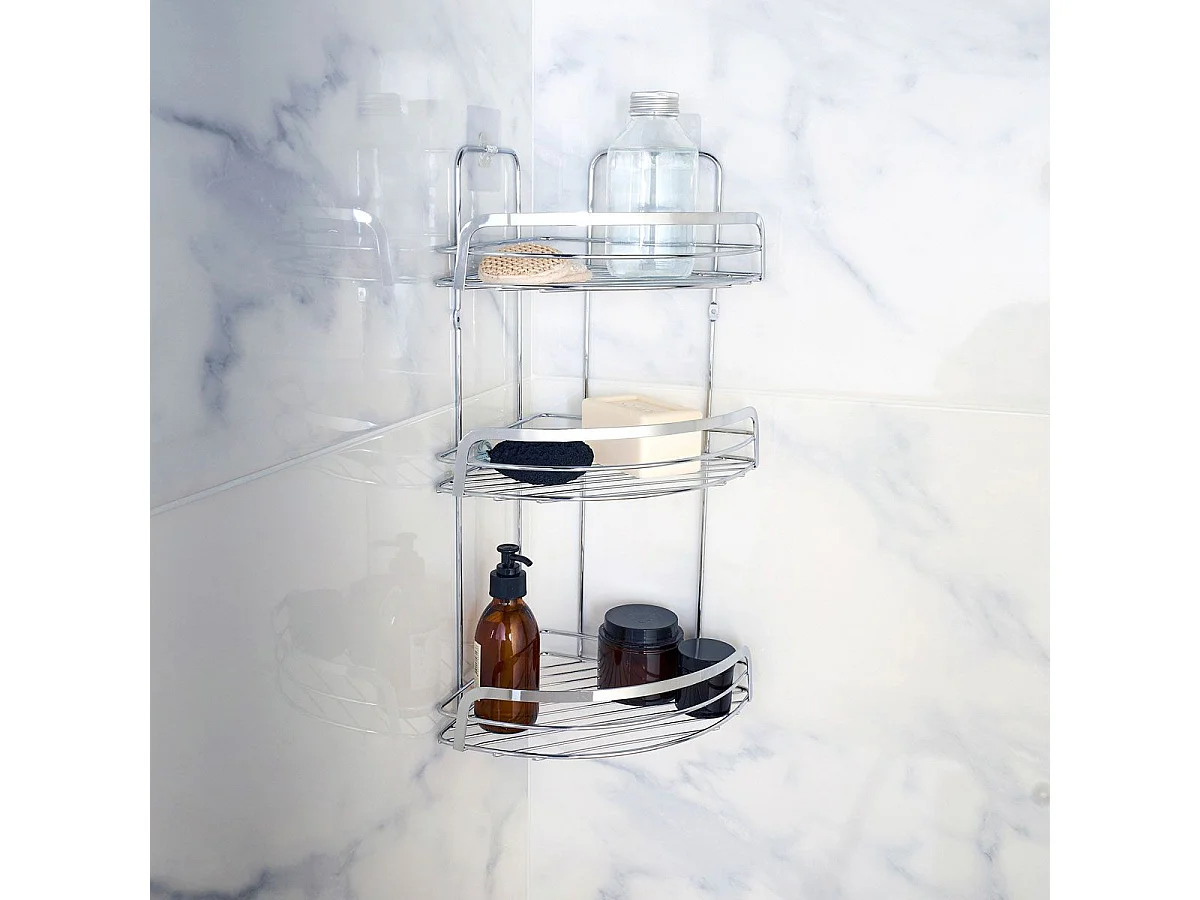 Support D'angle En Métal Chromé Avec Ventouse | Menta
