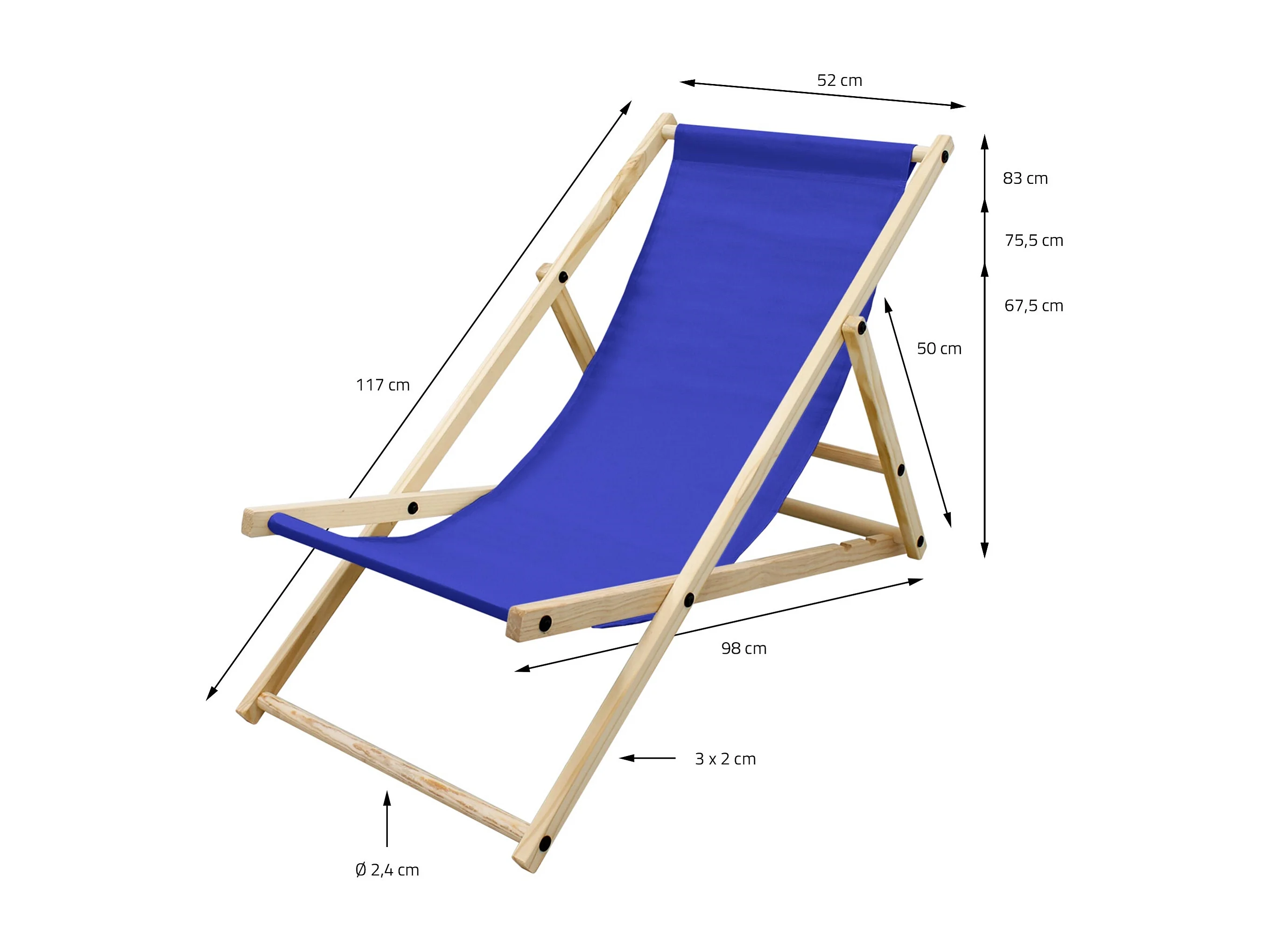 Set 10x Chaise longue de jardin pliable bleue en bois chiliennes 3 positions de couchage jusqu'à 120 kg usage intérieur et extérieur balcon terrasse
