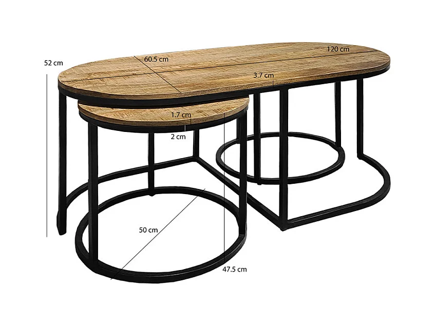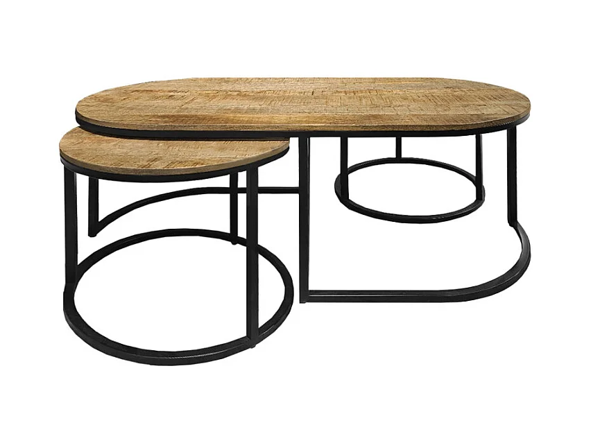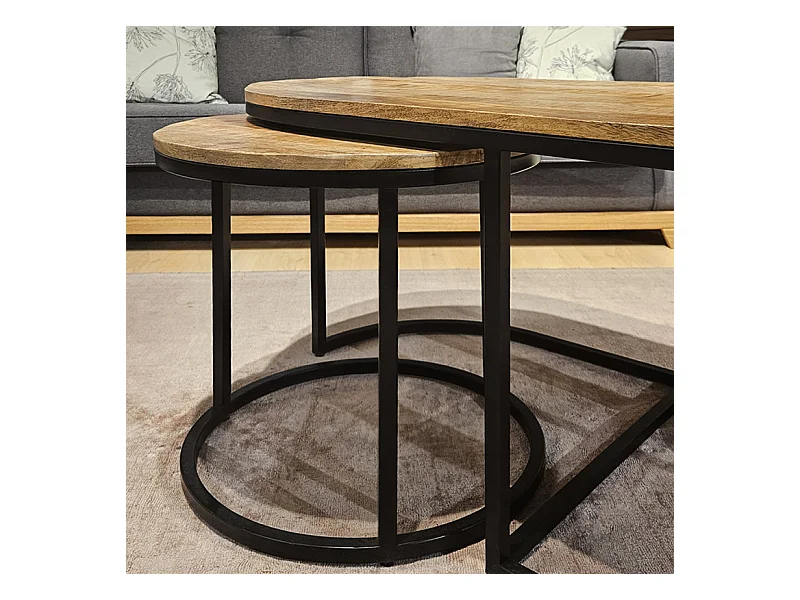 Set 3 tables basses gigognes en bois de manguier et pieds métal noir - MANHO