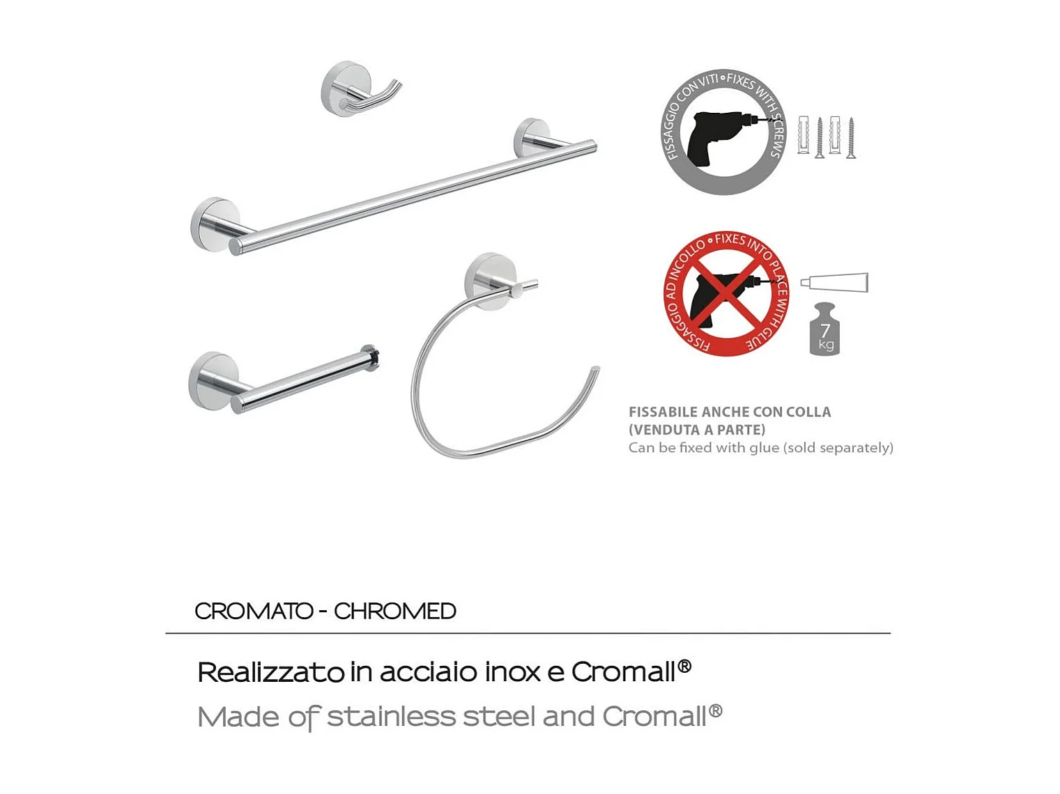 Set 4 Pcs Accessoires Muraux Pour Salle De Bain Acier Inoxydable Chrome | Violetta