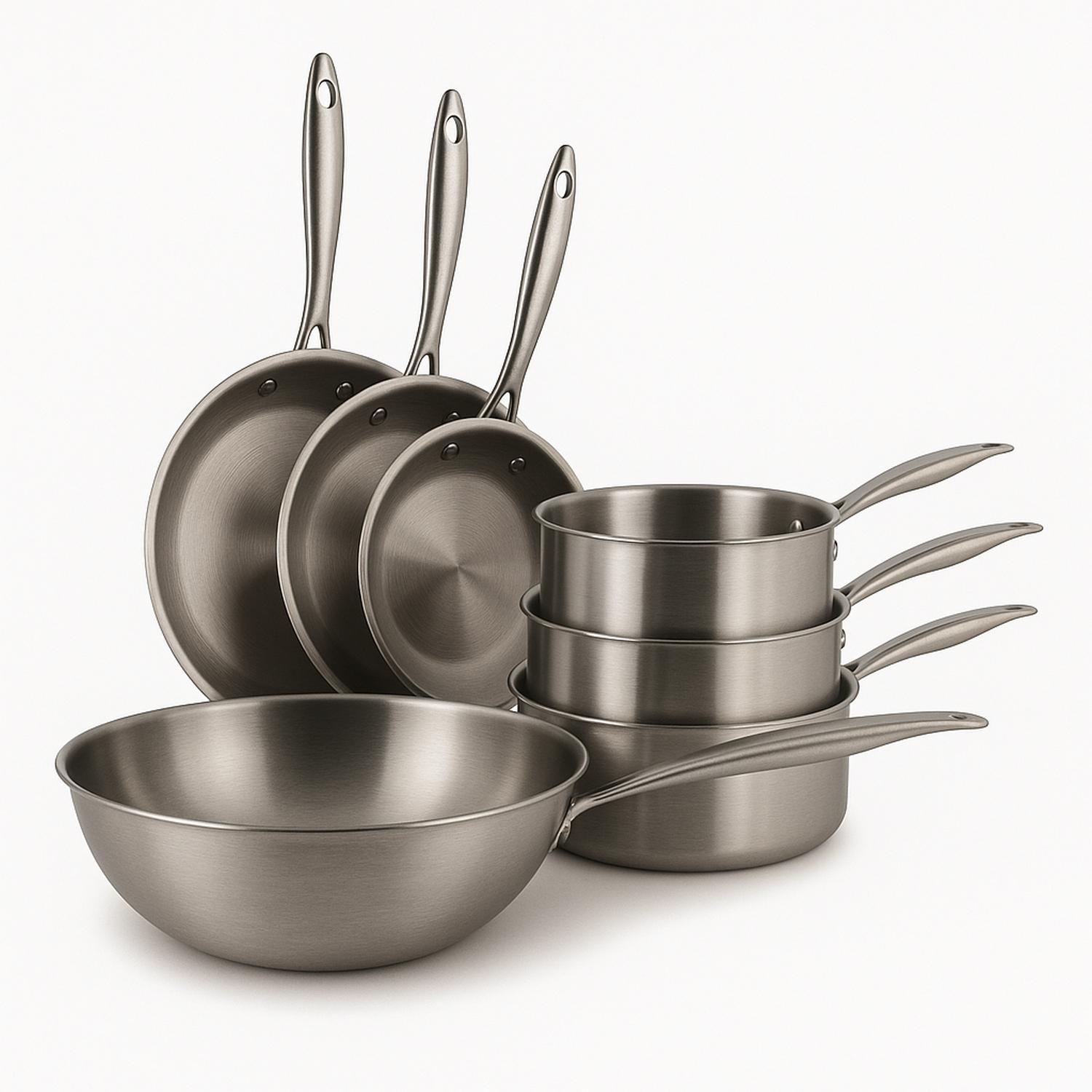 Menastyl - Set 7 Pieces Triply Wok Casserole Poele En Acier Inoxydable Induction - Made In France