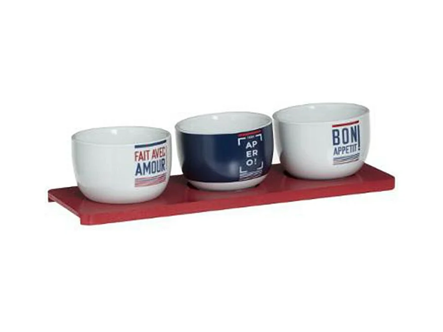Set Apéritif 4 Pièces "French" 27cm Blanc & Bleu
