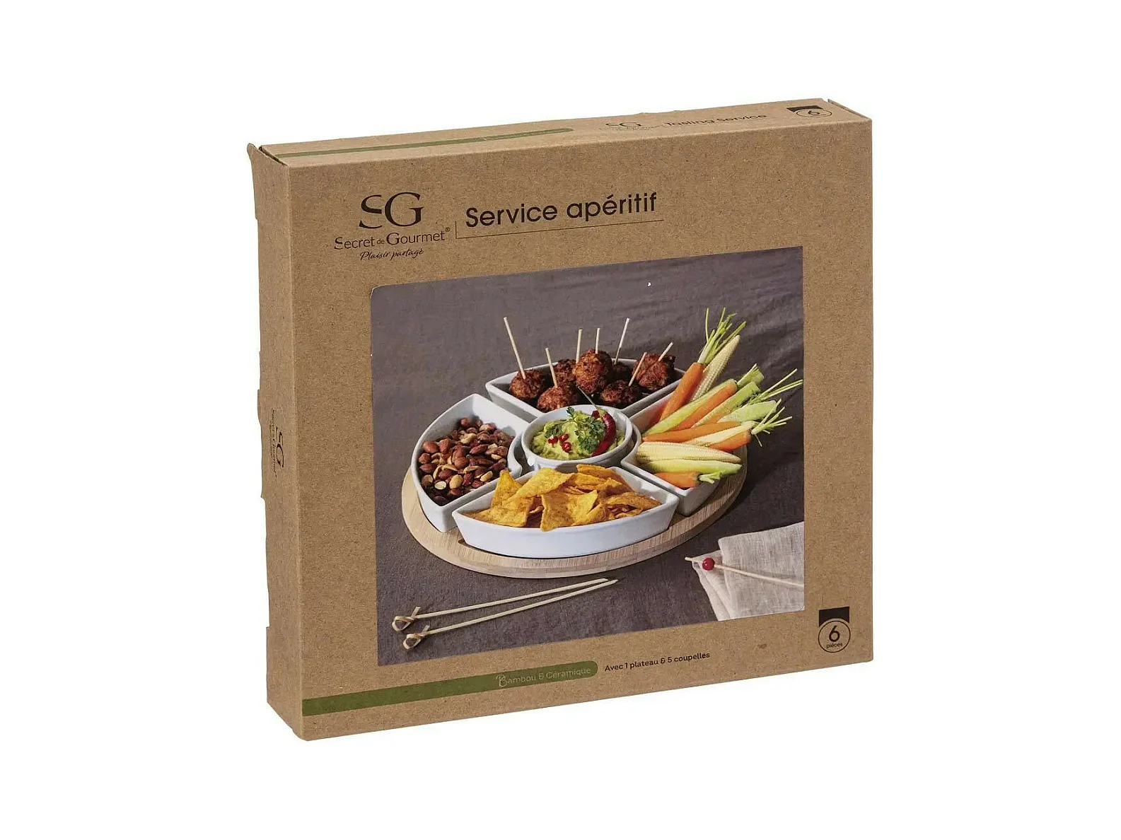 Set Apéritif 6 Pièces "Bambou" 27cm Blanc