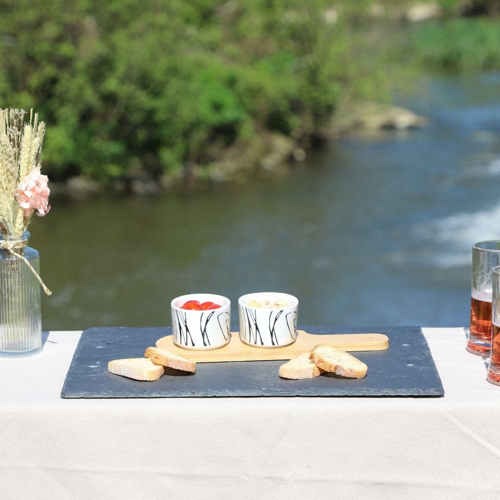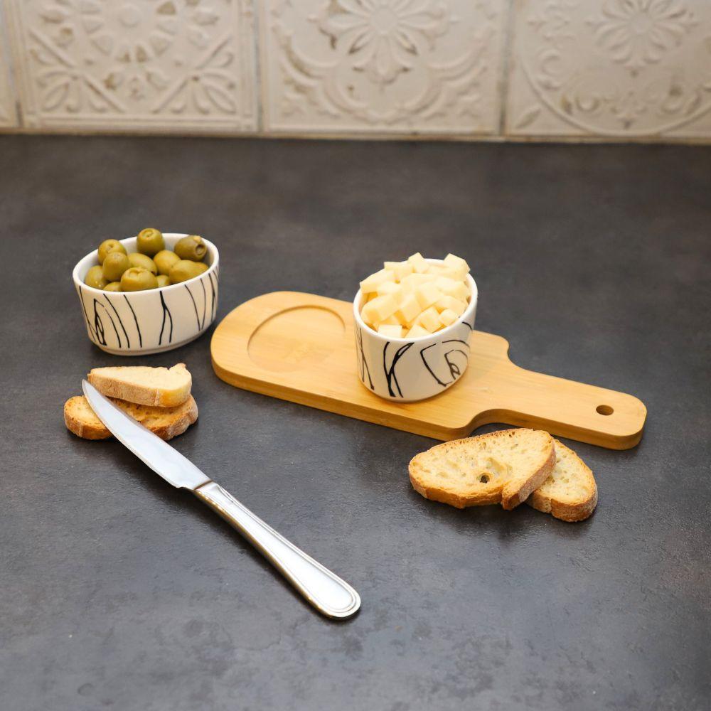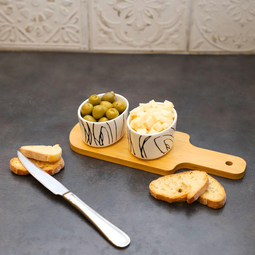 ~ Set apéritif tapas 2 verrines en bambou et céramique blanc et marron 26 x 9.5cm