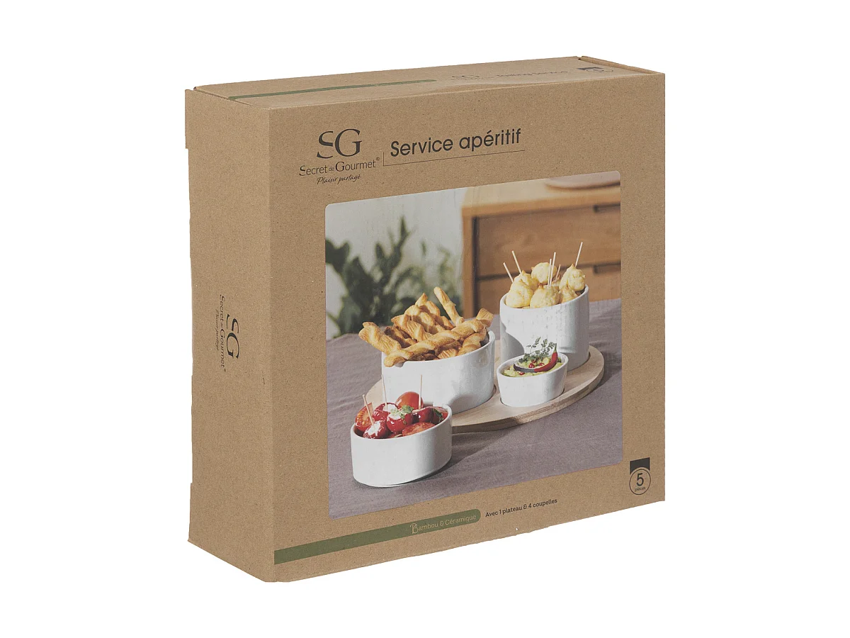 Set Apéritif 5 Pièces "Bambou" 33cm Blanc