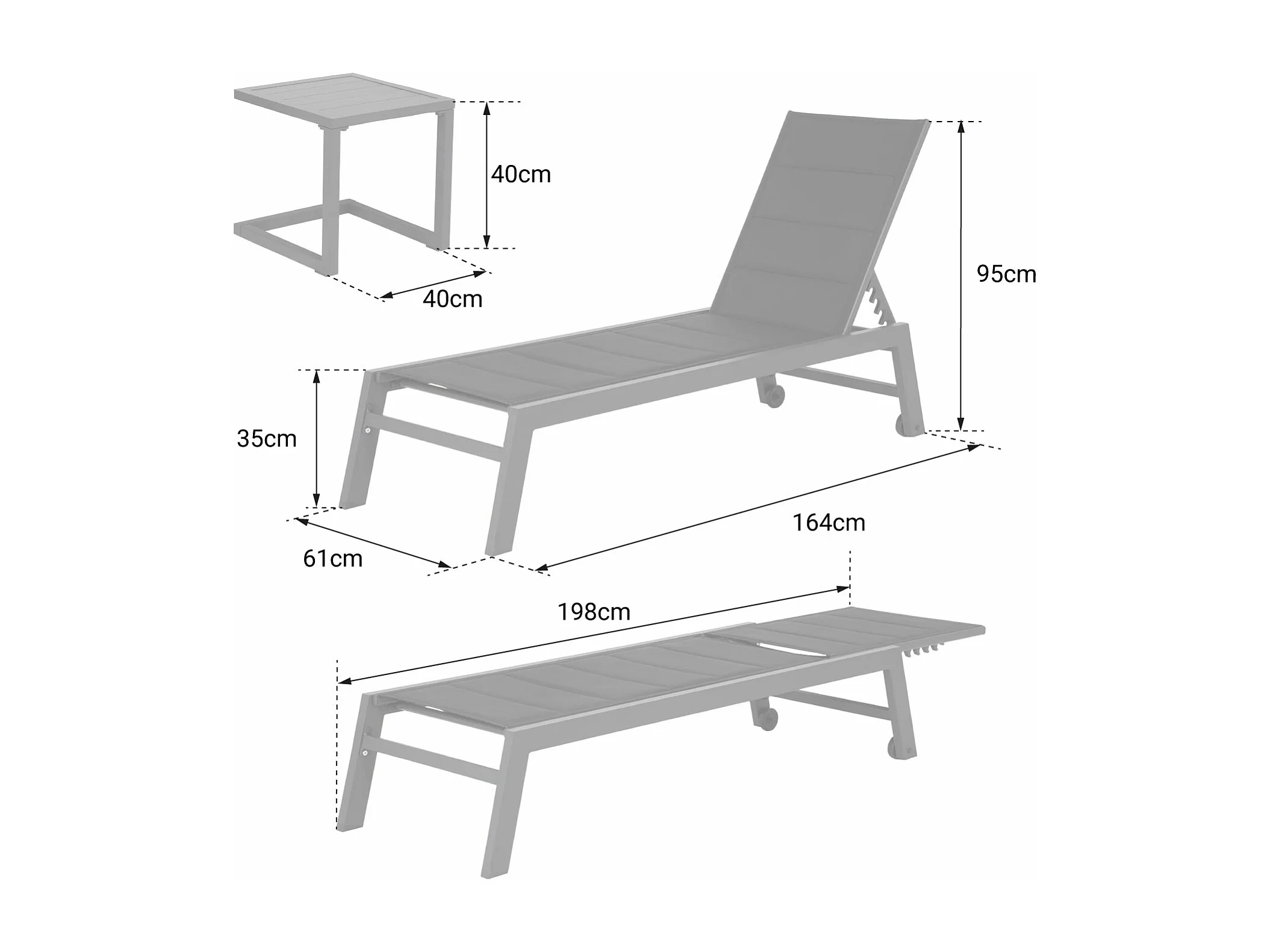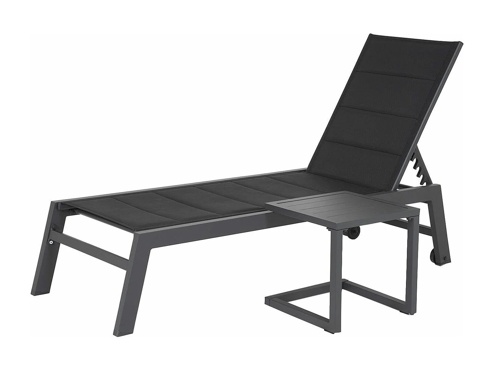 Set bain de soleil et table d'appoint BARBADOS en textilène noir - aluminium gris anthracite - HAPPY GARDEN