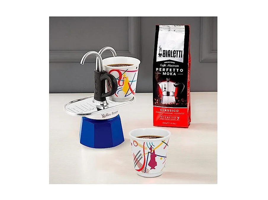 Set cafetiere italienne + 2 tasses - BIALETTI - Mini-express KANDINSKY - 100 ml - Inox / Bleu