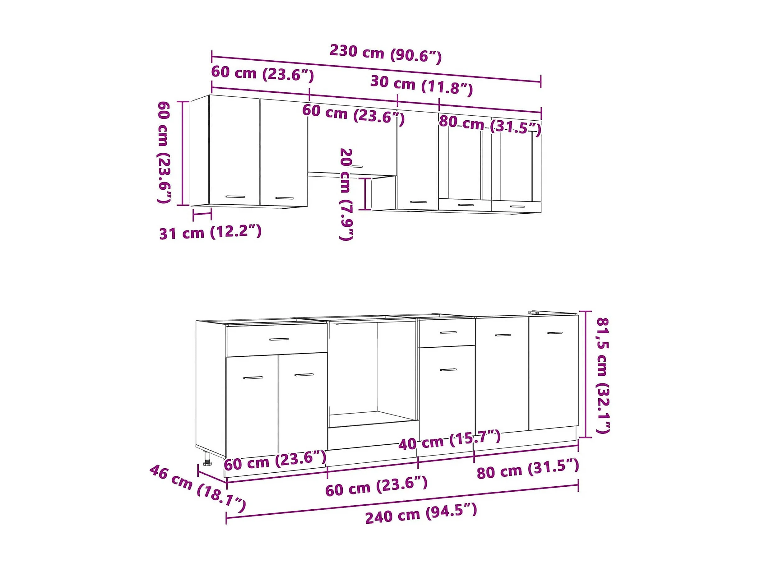 Ensemble de meubles de cuisine avec porte Lyon 8 pcs Chêne fumé