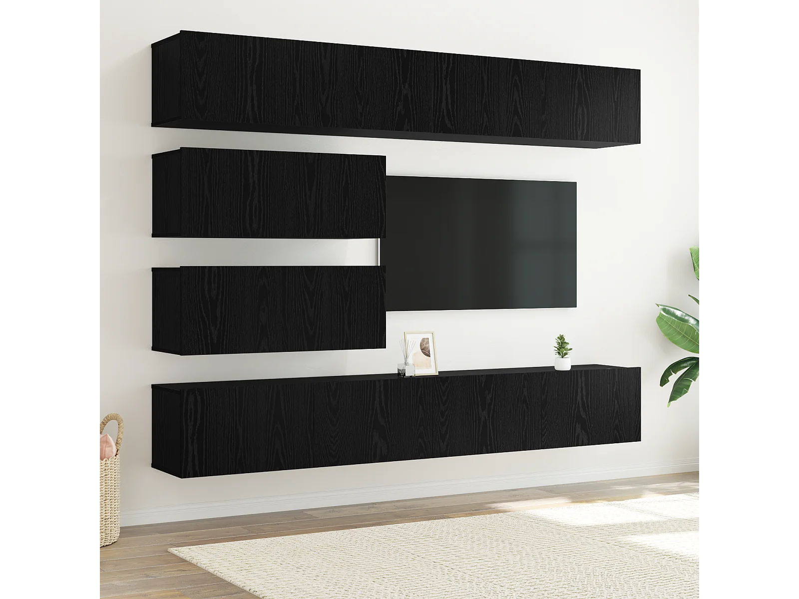 Set de 10 Meubles TV | Bancs TV | Armoires TV - Murales en Bois d'Ingénierie Chêne Noir