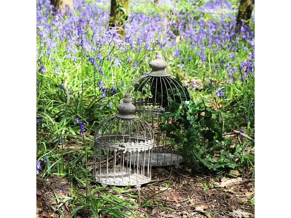 Set de 2 cages à oiseaux bougeoir métal gris Ht.46.5-33.5 cm