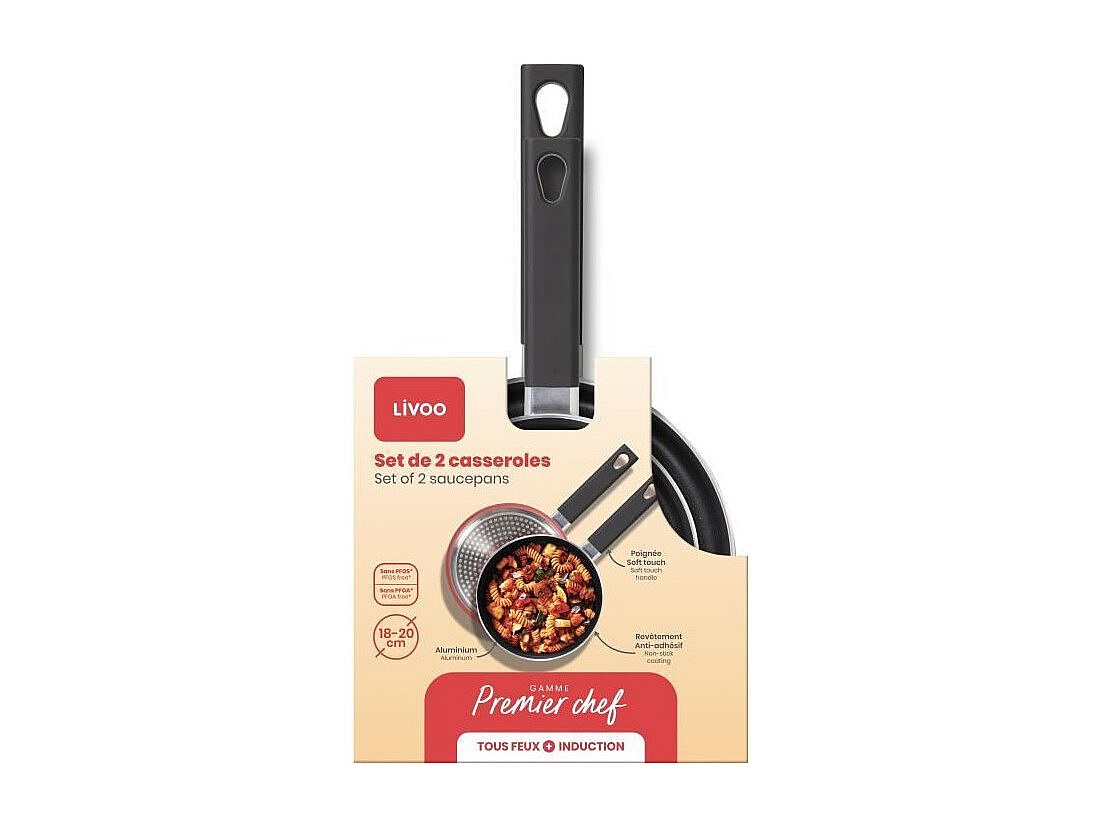 Set de 2 casseroles - LIVOO - MEP154R - Antiadhésif sans PFOA ni PFOS - Manche silicone - Tous feux dont induction