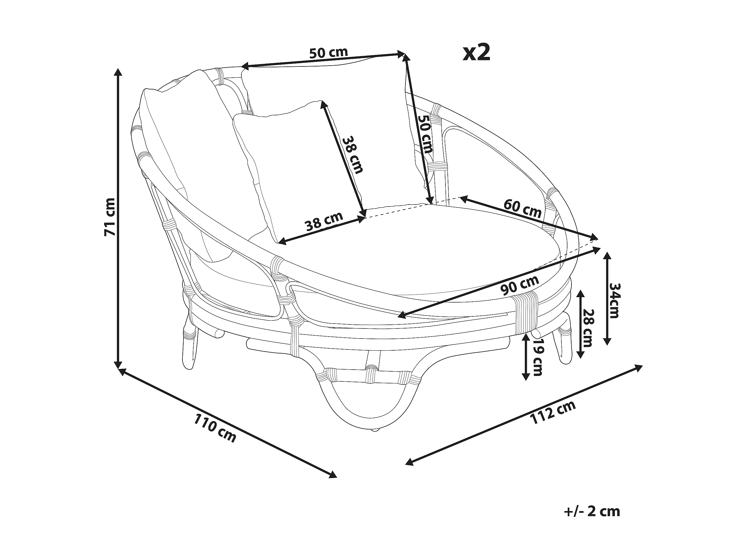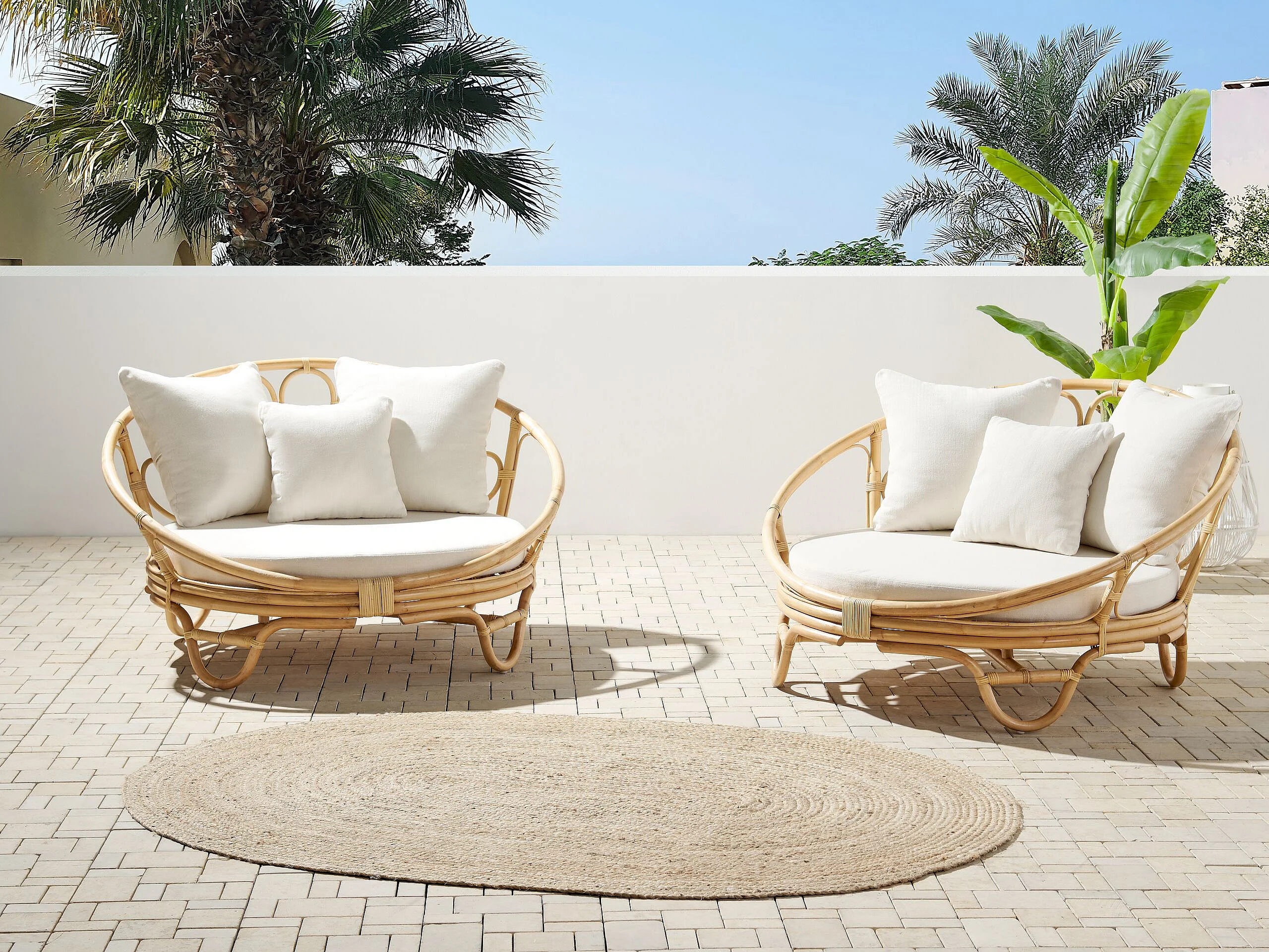 Lot de 2 lits de jardin ROSSANO Rotin Naturel