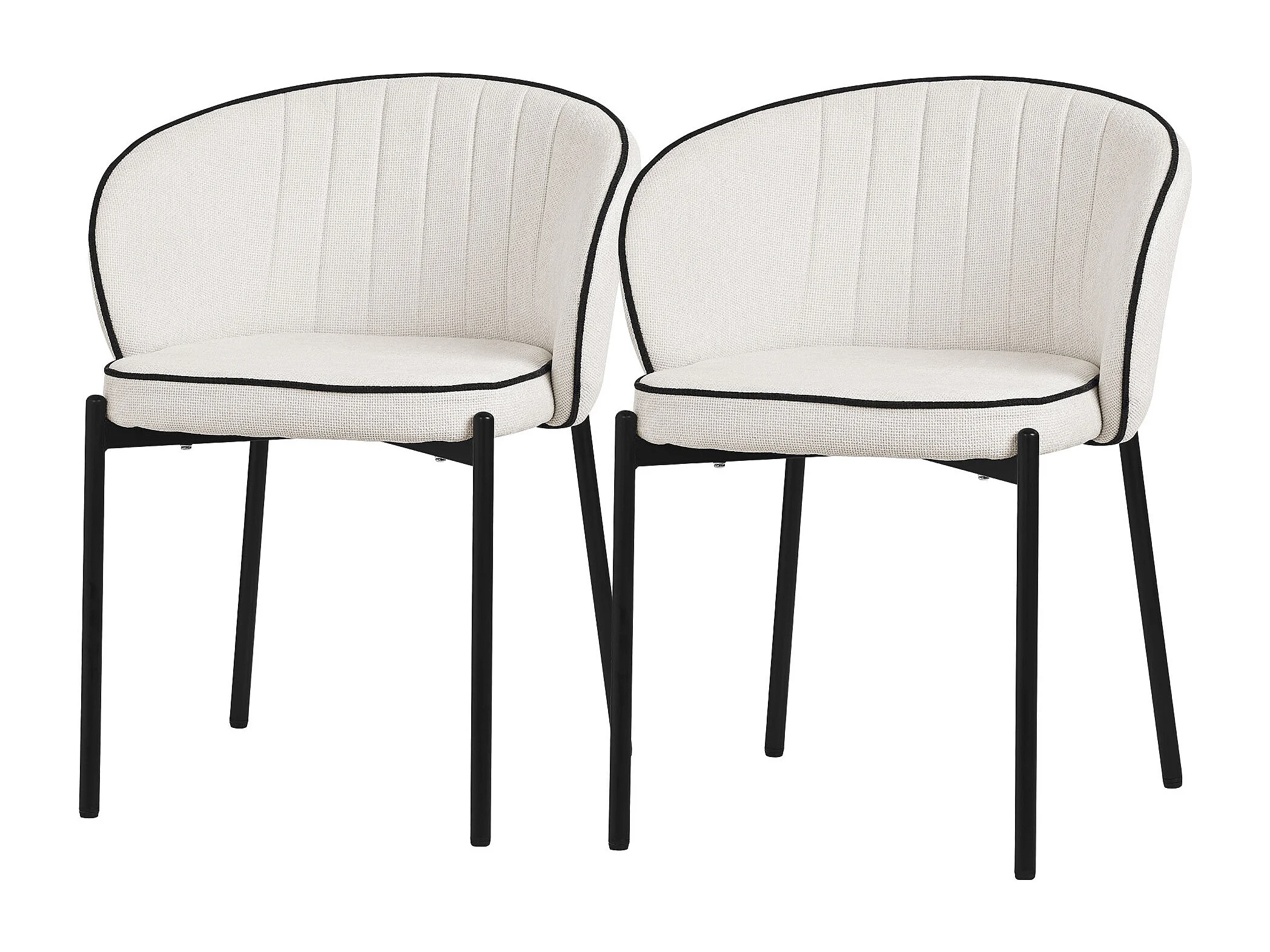 Set de 2 Chaises de salle à manger beige revêtement en tissu pieds en métal robustes fauteuils rembourrés dossier ergonomique pour cuisine ou salon