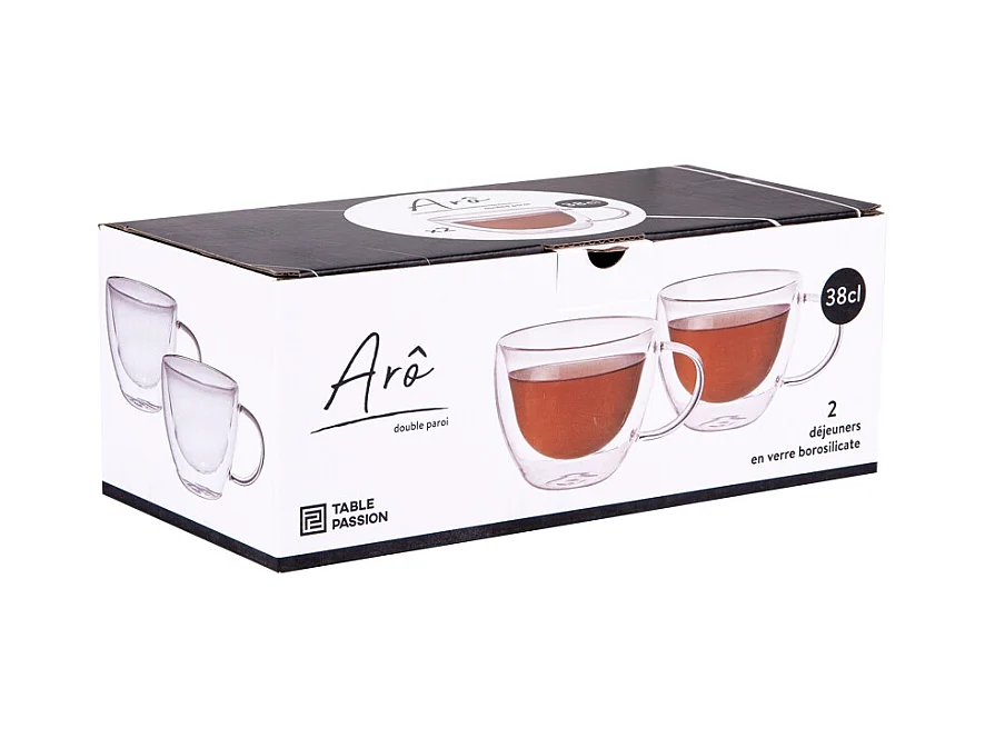 Set de 2 déjeuners de 38 cl Arô double paroi en verre borosilicate