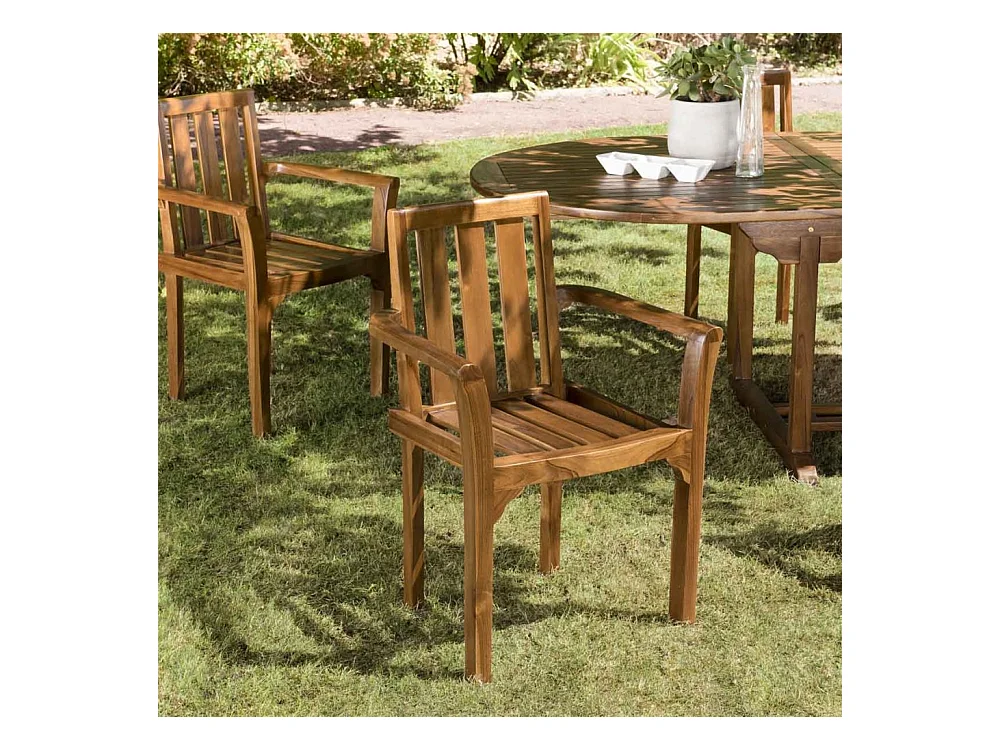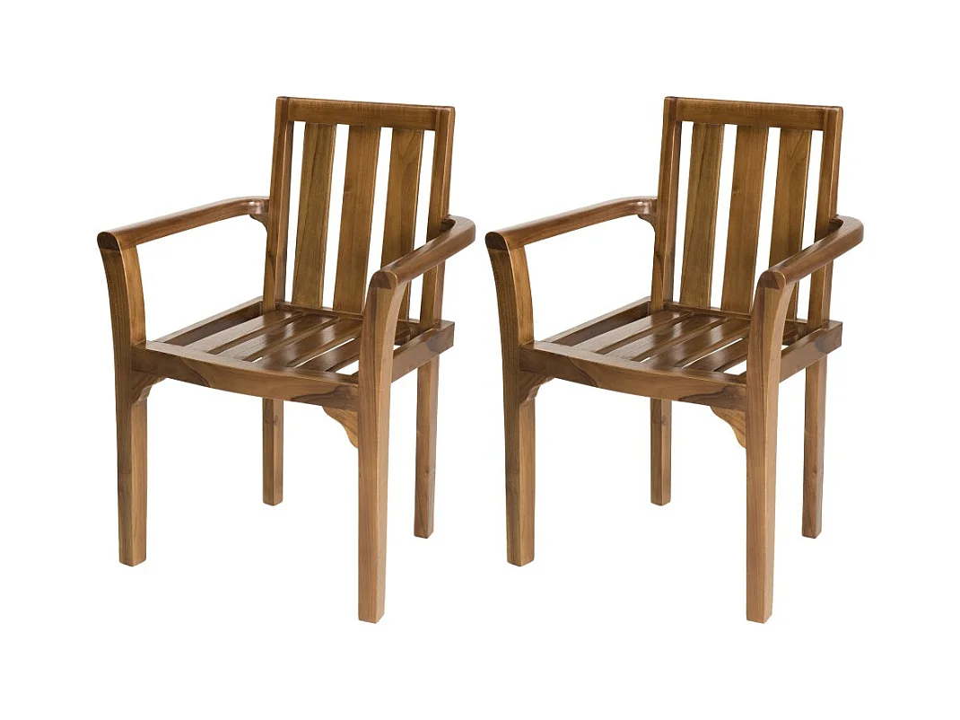 MAEVA - Ensemble de 2 fauteuils empilables en bois teck huilé