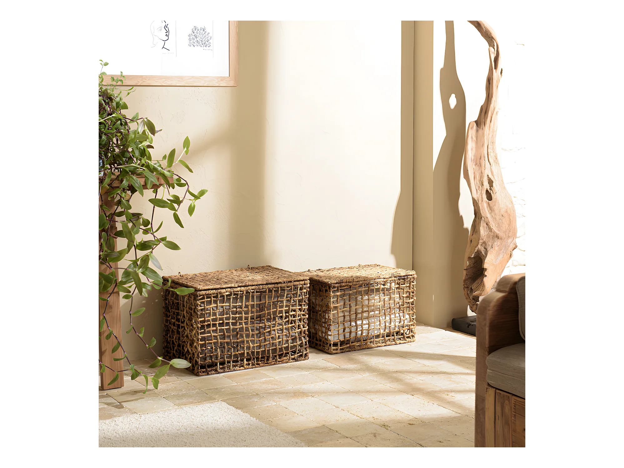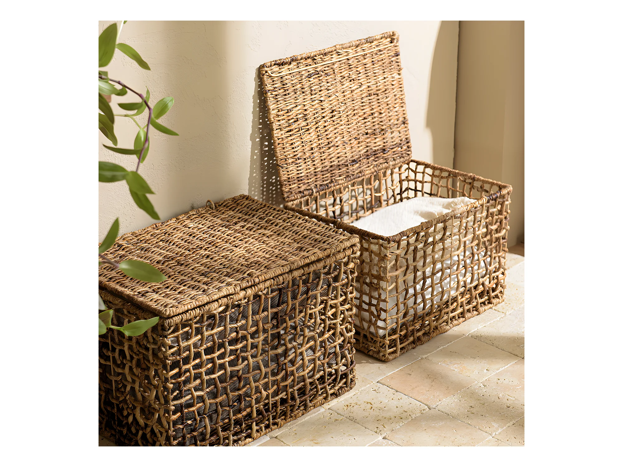 ALIDA - Set de 2 paniers de rangement en tissage naturel ajouré