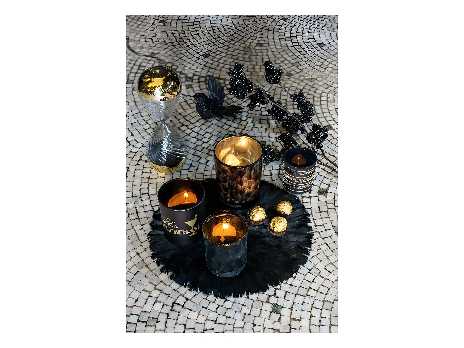 Photophore en Verre "Boho" 20cm Noir & Cuivre