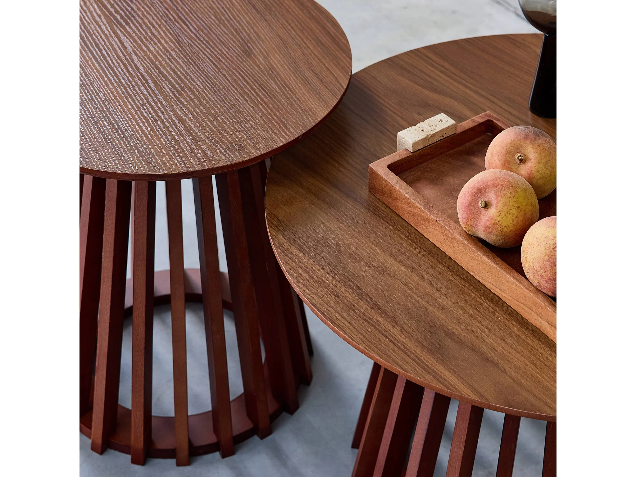 Lot de 2 tables basses rondes décor bois de noyer Népal