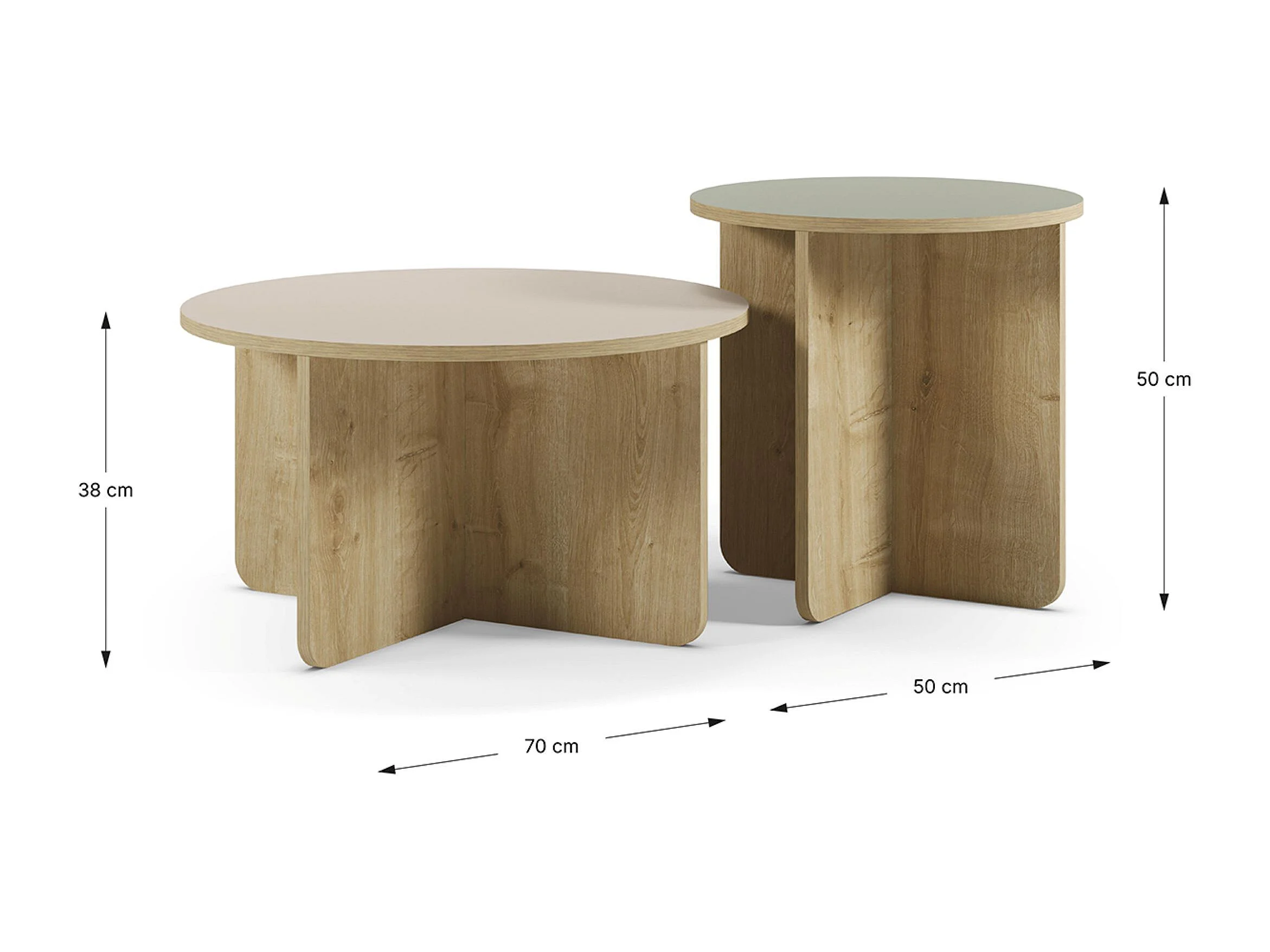 Set de 2 tables basses, tables de salon aspect bois coloris chêne, vert