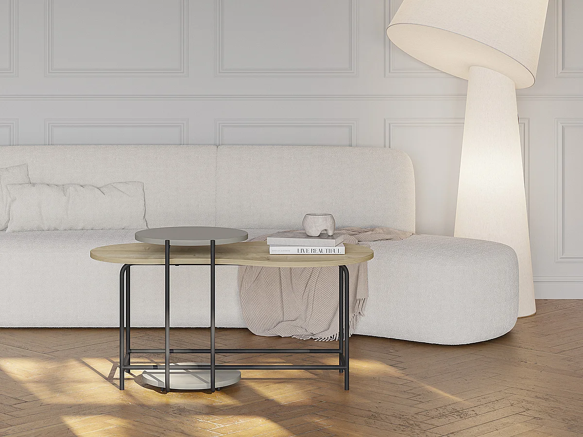 Set de 2 tables basses, tables de salon aspect bois coloris chêne, vert et métal coloris noir