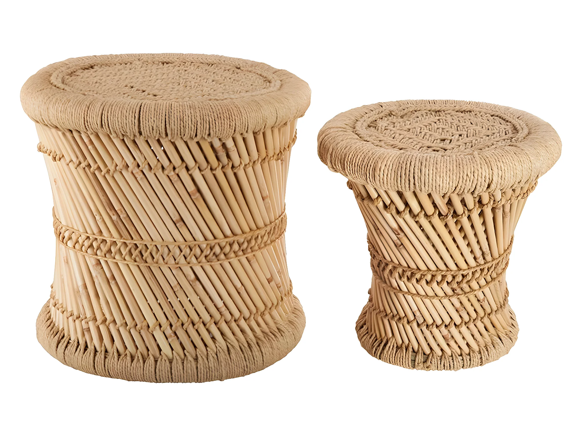 Set de 2 Tables d'appoint en Corde et Bambou Naturel