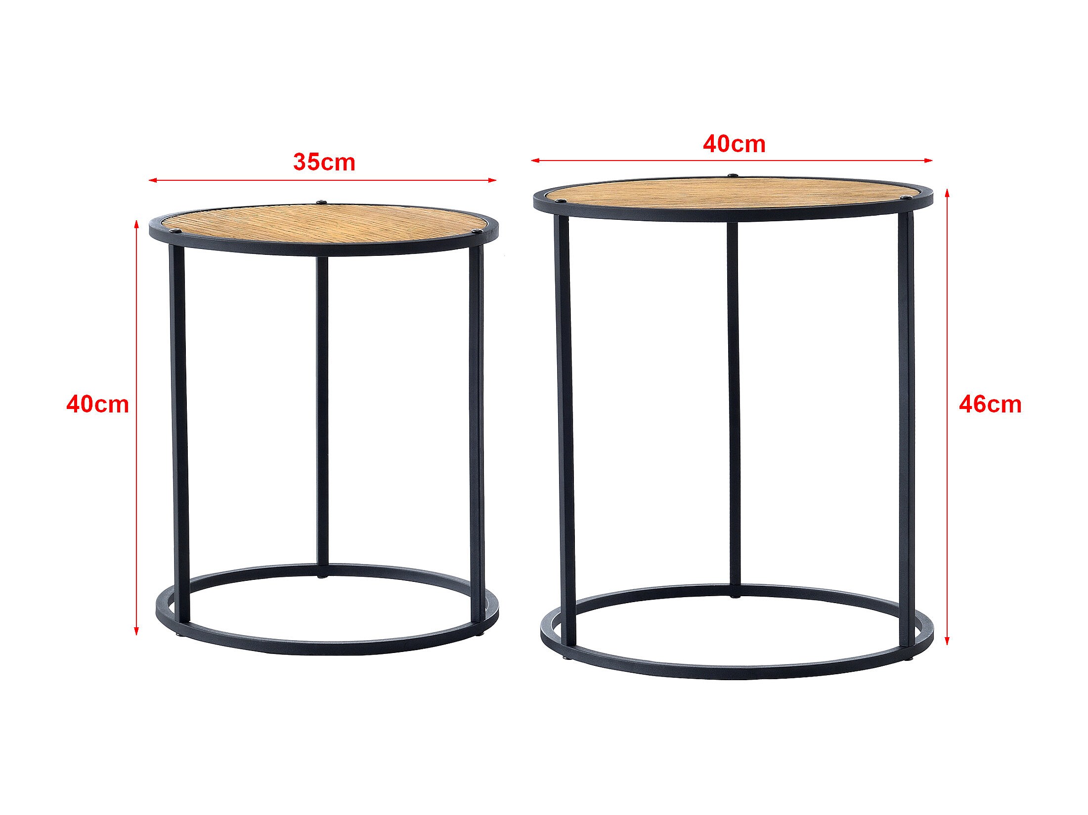 Lot de 2 tables basses rondes effet chêne. Ø58 x H 40cm / Ø50 x H 33cm SYLVA