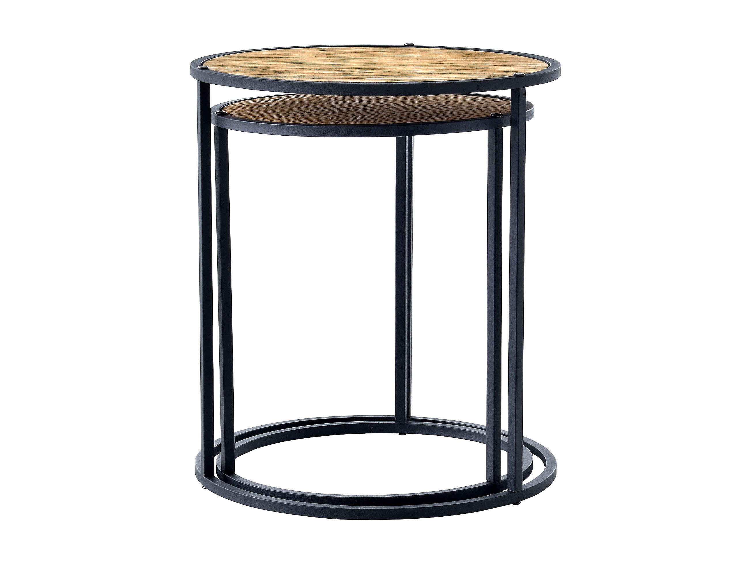 Set de 2 tables basses Neqi gigognes rondes noir effet bois [en.casa]