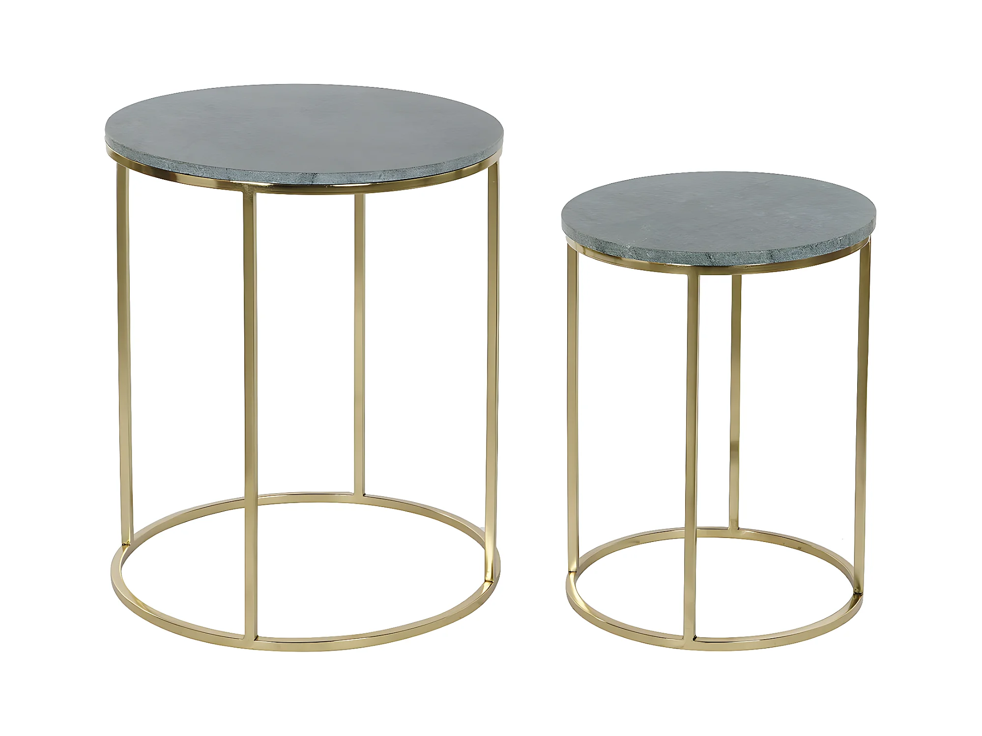 Set de 2 tables d'appoints en aluminium coloris doré et marbre noir