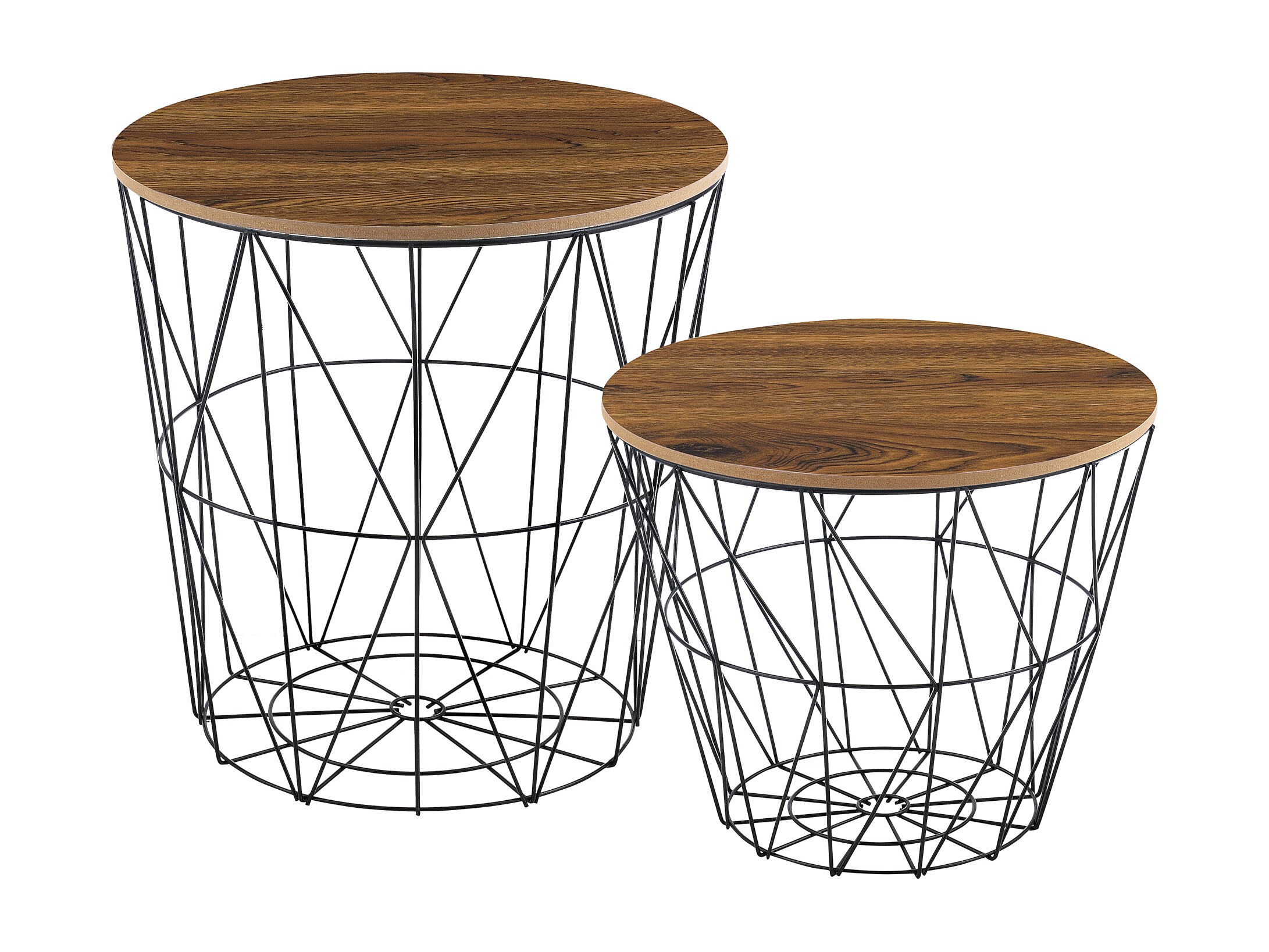 URBAN MEUBLE Ensemble de 2 tables basses gigognes rondes effet bois noyer style industriel