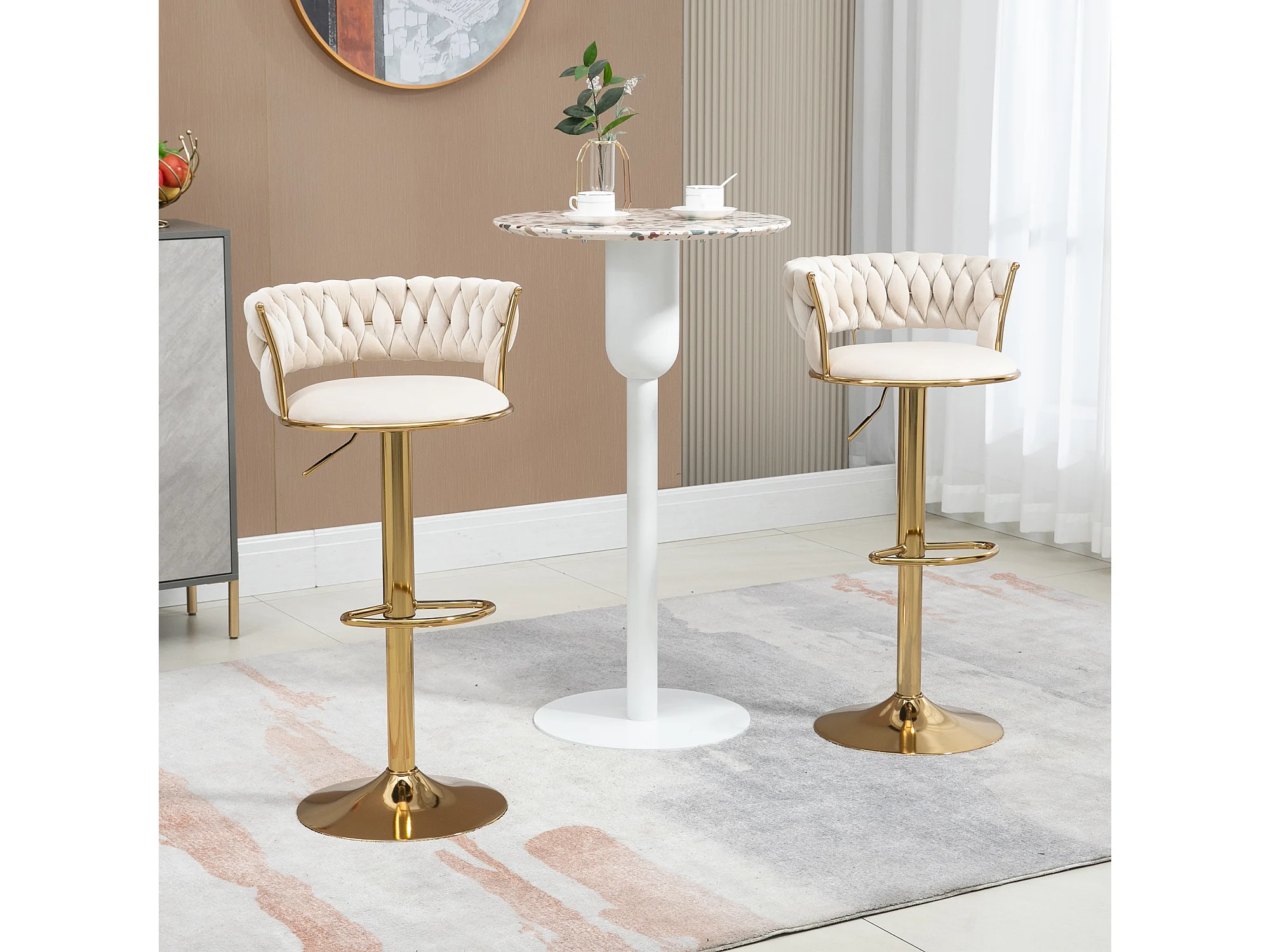 Set de 2 Tabourets de bar pivotantes à 360° et réglables en hauteur avec repose-pieds, velours, beige et argent