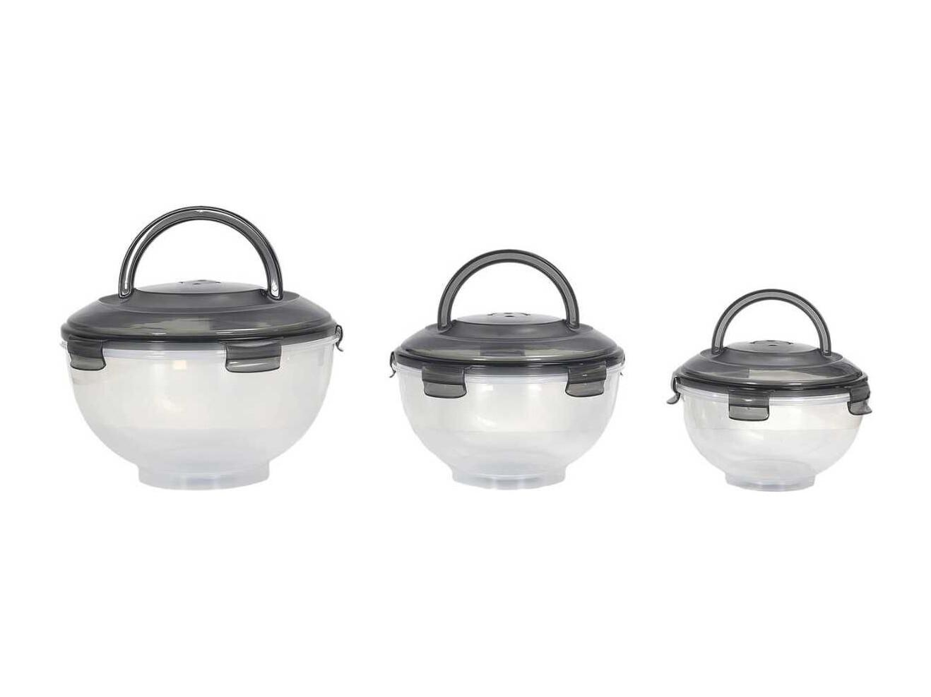 Set de 3 boîtes hermétiques à emporter en plastique avec couvercles hermétiques gris
