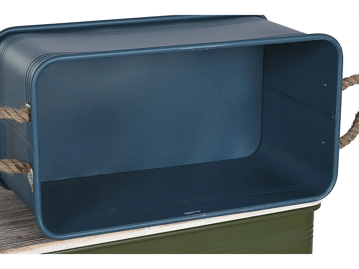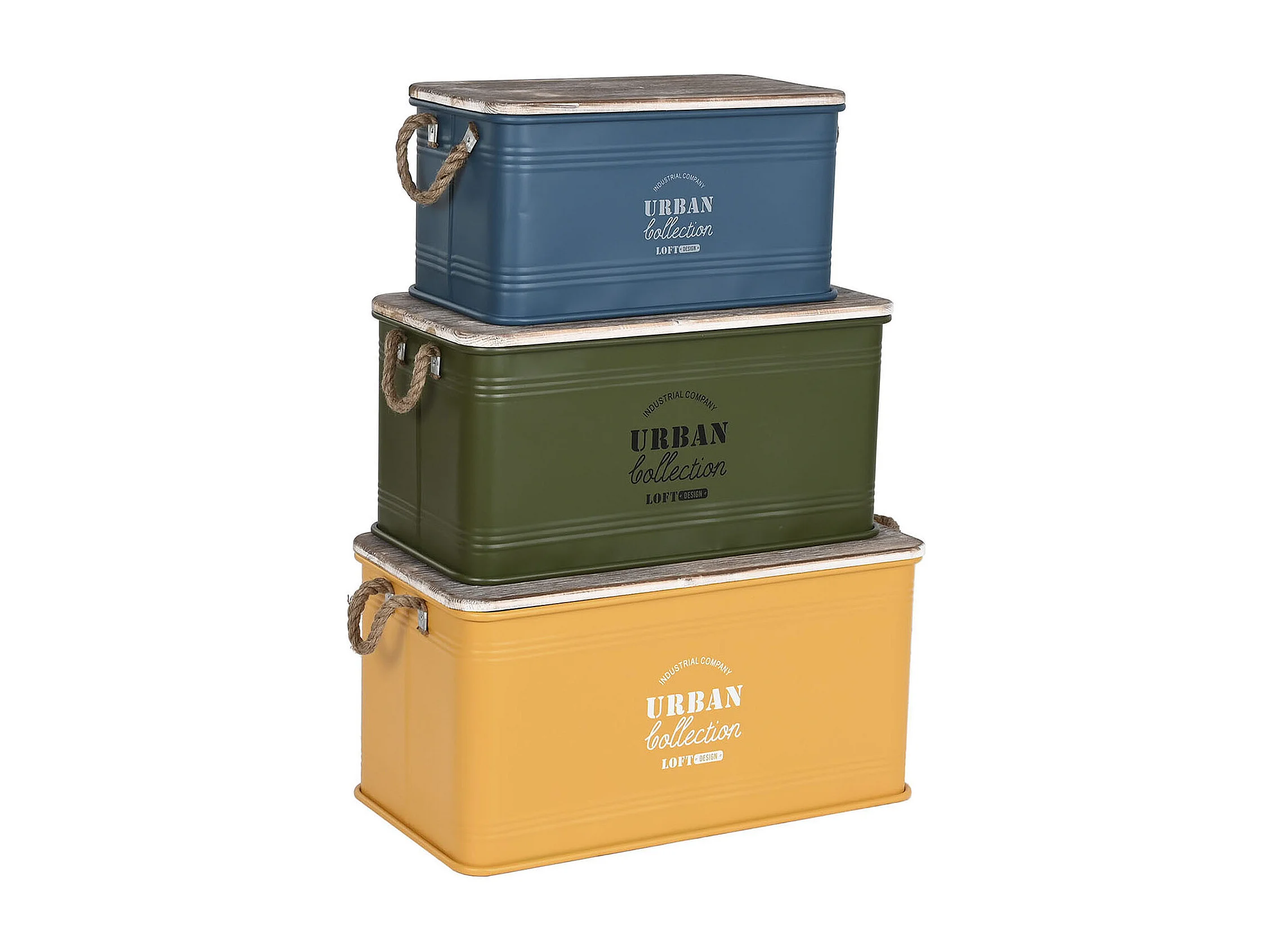 Set de 3 coffres de rangement en métal multicolore et bois naturel