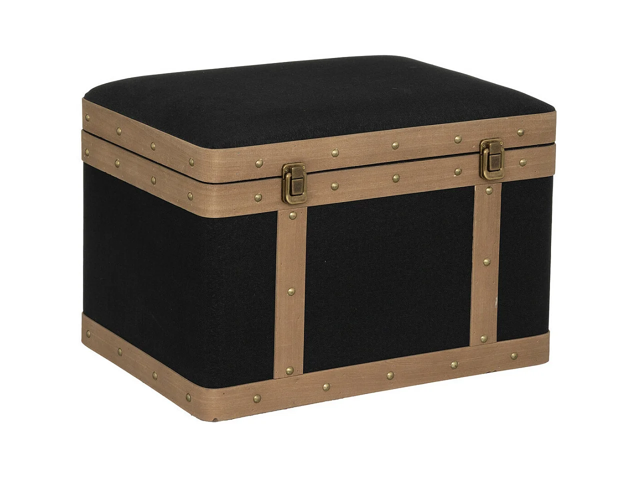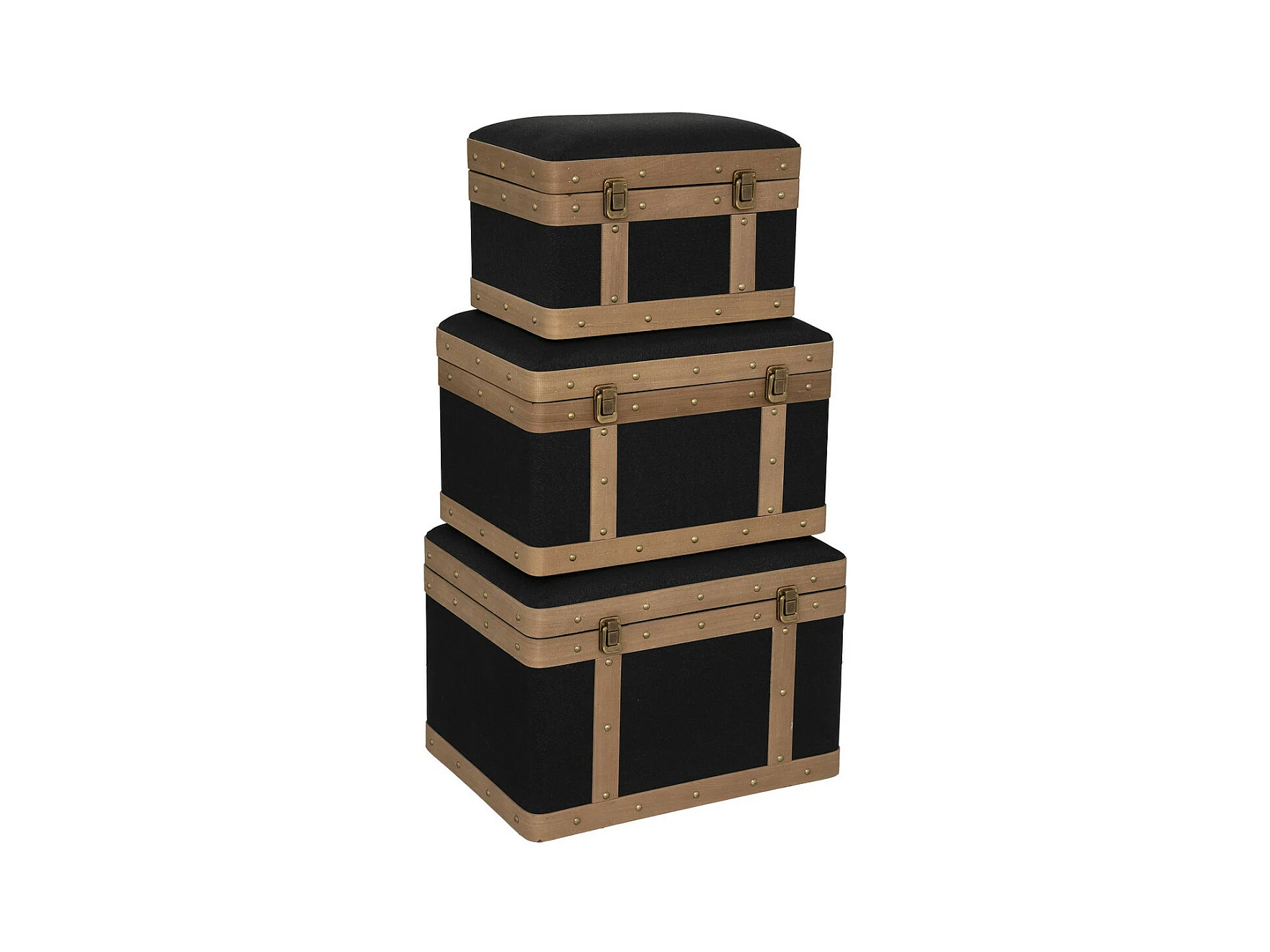 Set de 3 Malles de rangement déco en Bois et Lin noir