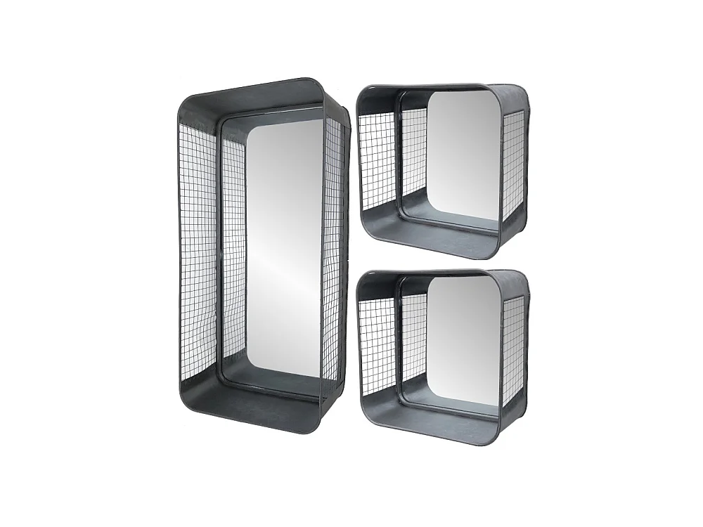 Set de 3 miroirs grillagés en métal grs L.57-26 cm