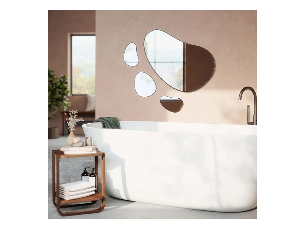 Miroir mural asymétrique, cadre en métal, design moderne, verre et MDF, argenté (110x2x54.5 cm)
