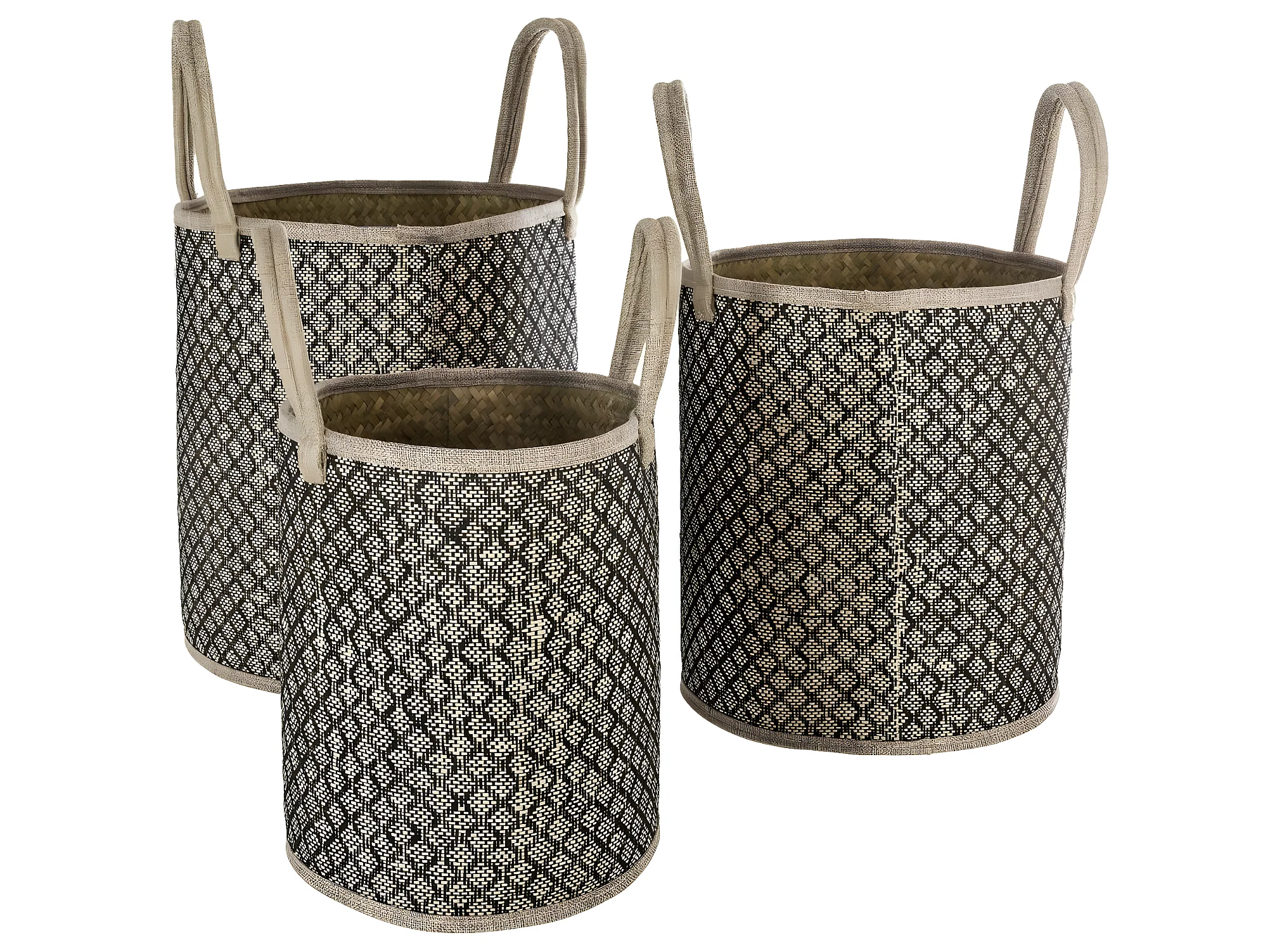 Lot de 3 paniers de rangement à anses en osier coloris naturel et noir