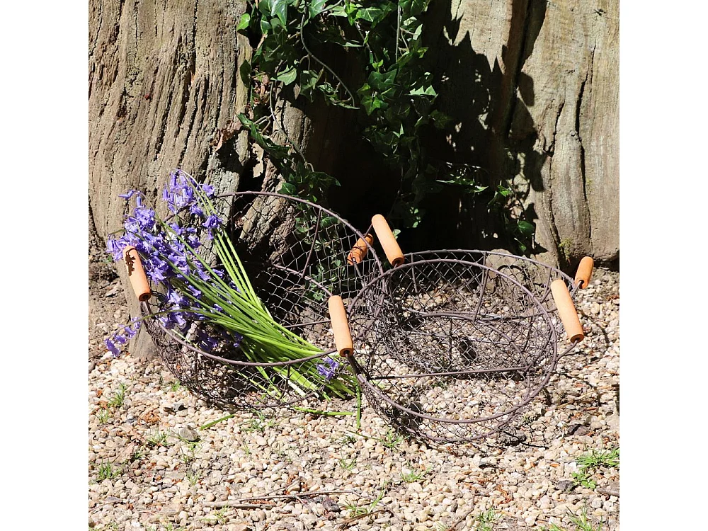 Set de 3 paniers grillagés ronds noirs 32-31-27 cm