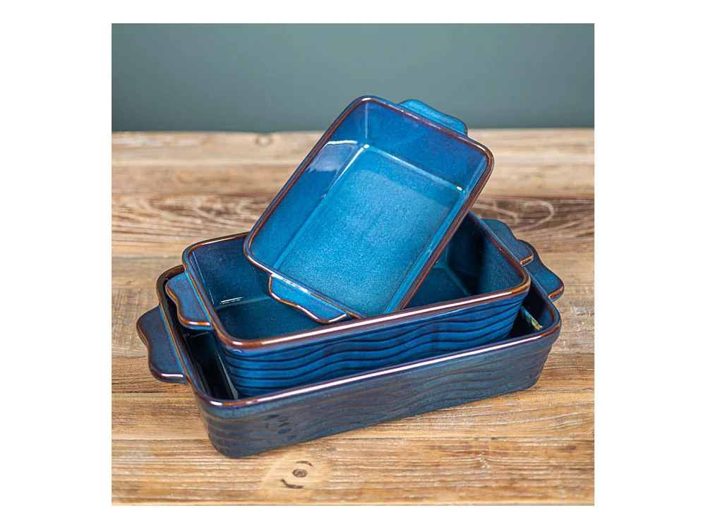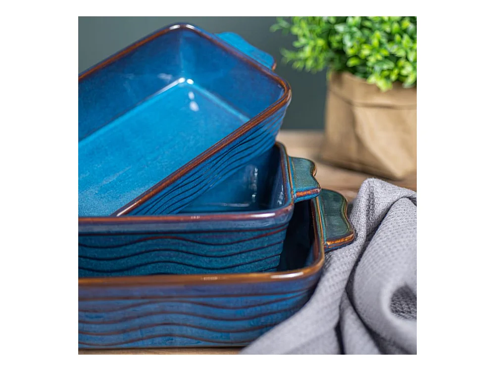 Set de 3 plats à four vague bleu 25, 30 et 36 cm