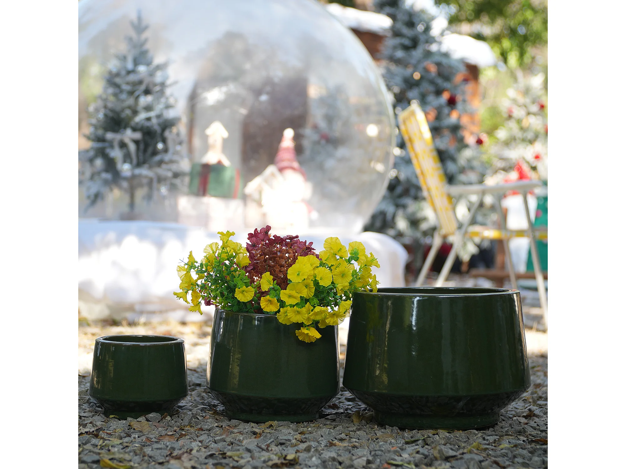 Set de 3 pots de fleurs ronds en céramique (Ø 38,1/28/22 cm), vert foncé