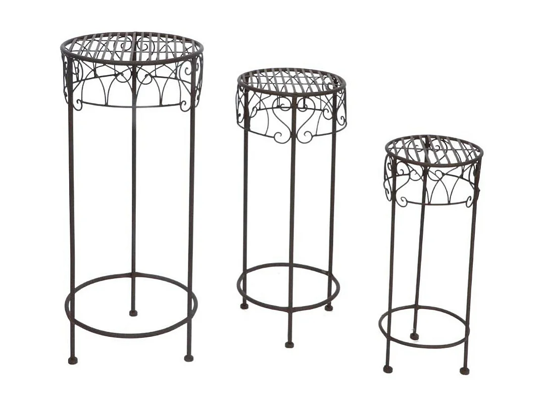 Set de 3 sellettes rondes en fer forgé marron Ht.50-60-70 cm