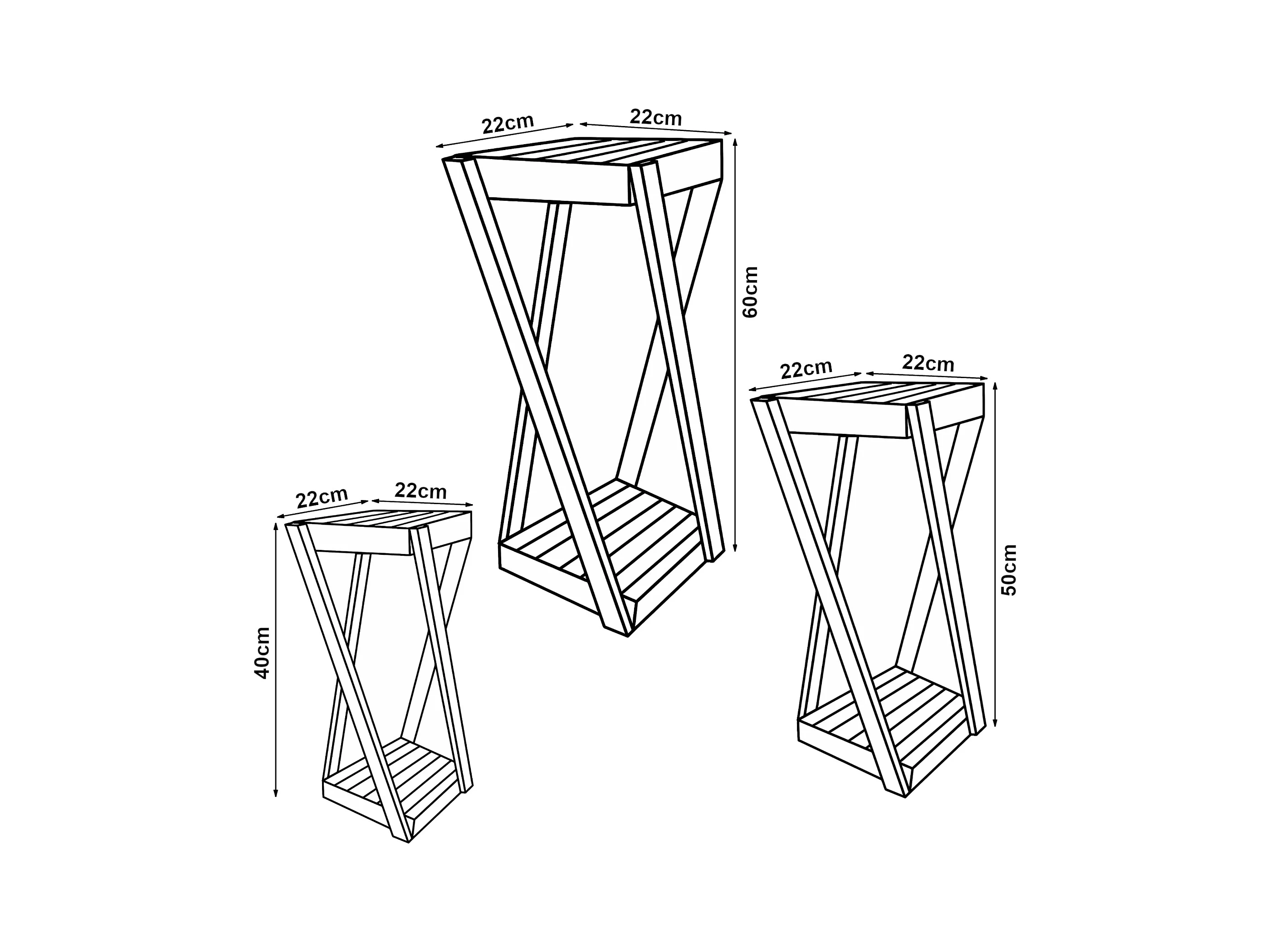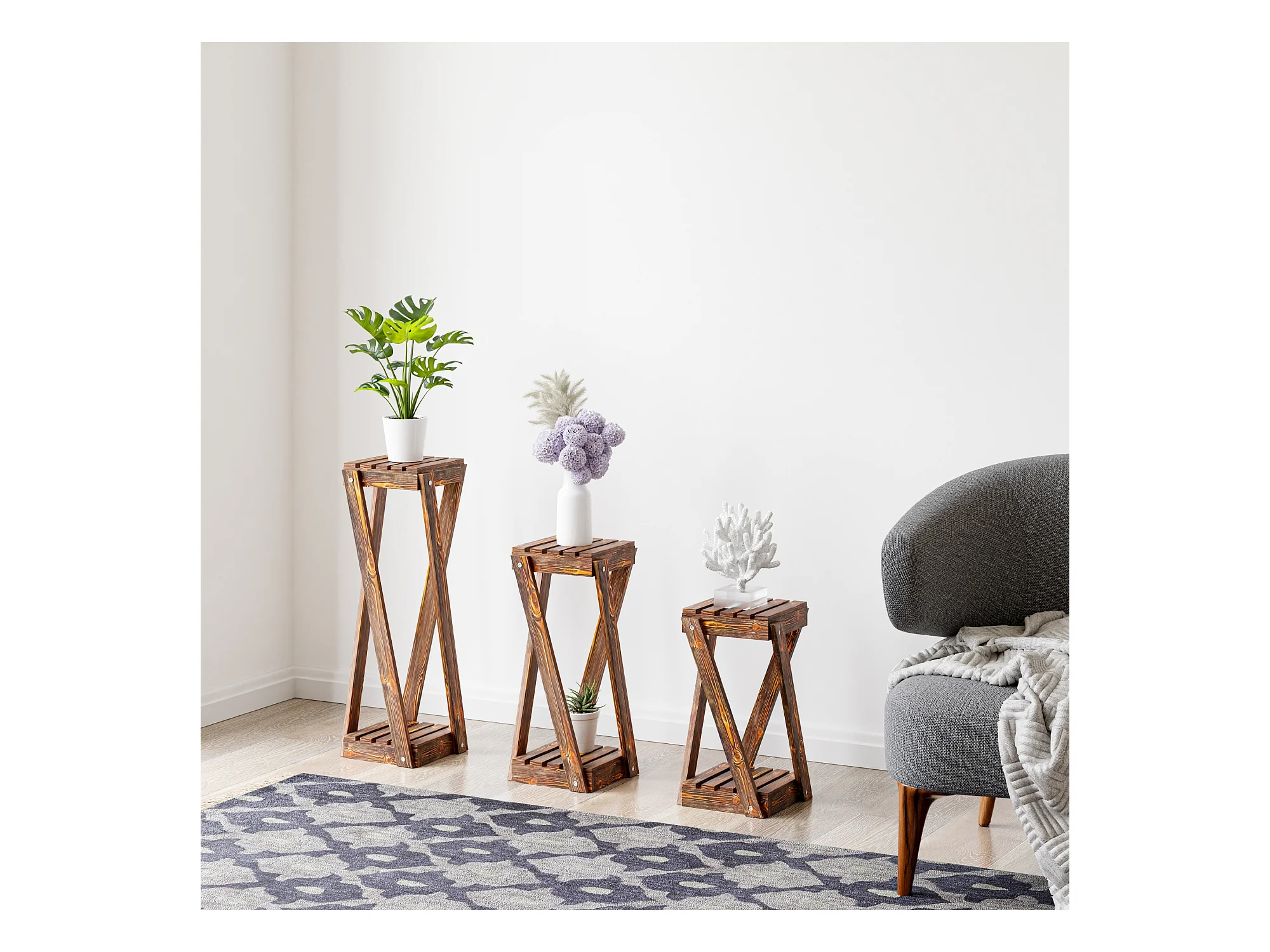 Set de 3 tables d'appoint Muonio bois de pin 40 - 60 x 22 x 22 cm bois foncé [en.casa]