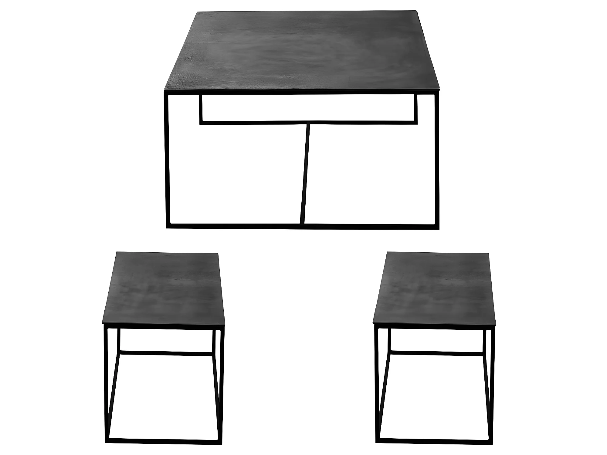 Set de 3 tables gigognes noires 80x80x45 et 75x39x41 cm