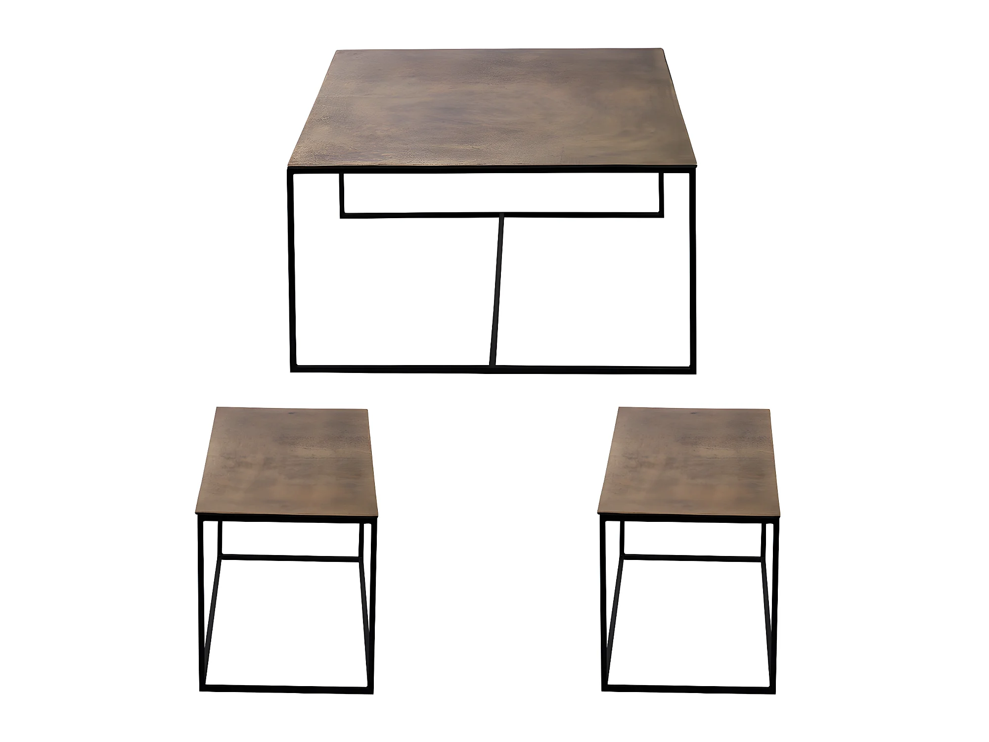 Set de 3 tables gigognes or 80x80x45 et 75x39x41 cm