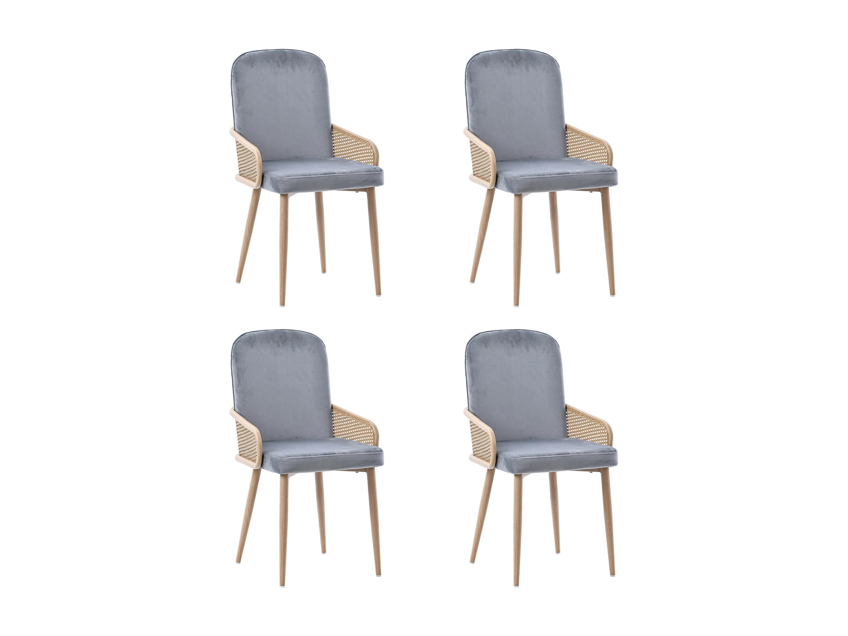 Set de 4 chaises de salle à manger en velours, Design Rattan, Métal, Gris, (61x59.5x52 cm)