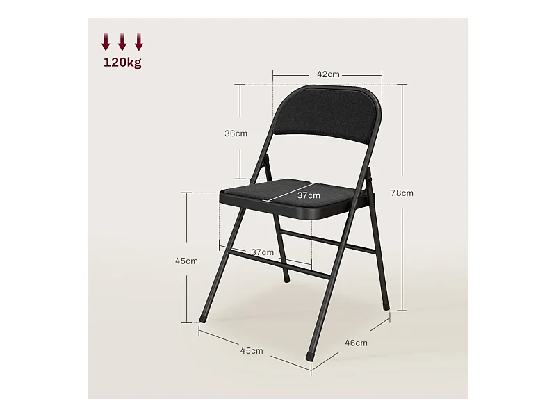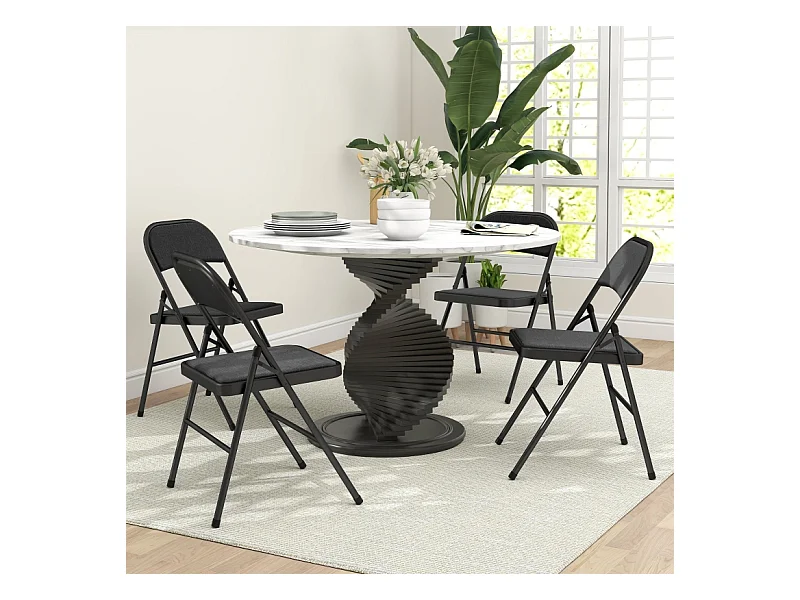 Set de 4 chaises pliantes, avec coussin, en tissu lin, structure en métal, noires, (45x46x78 cm)