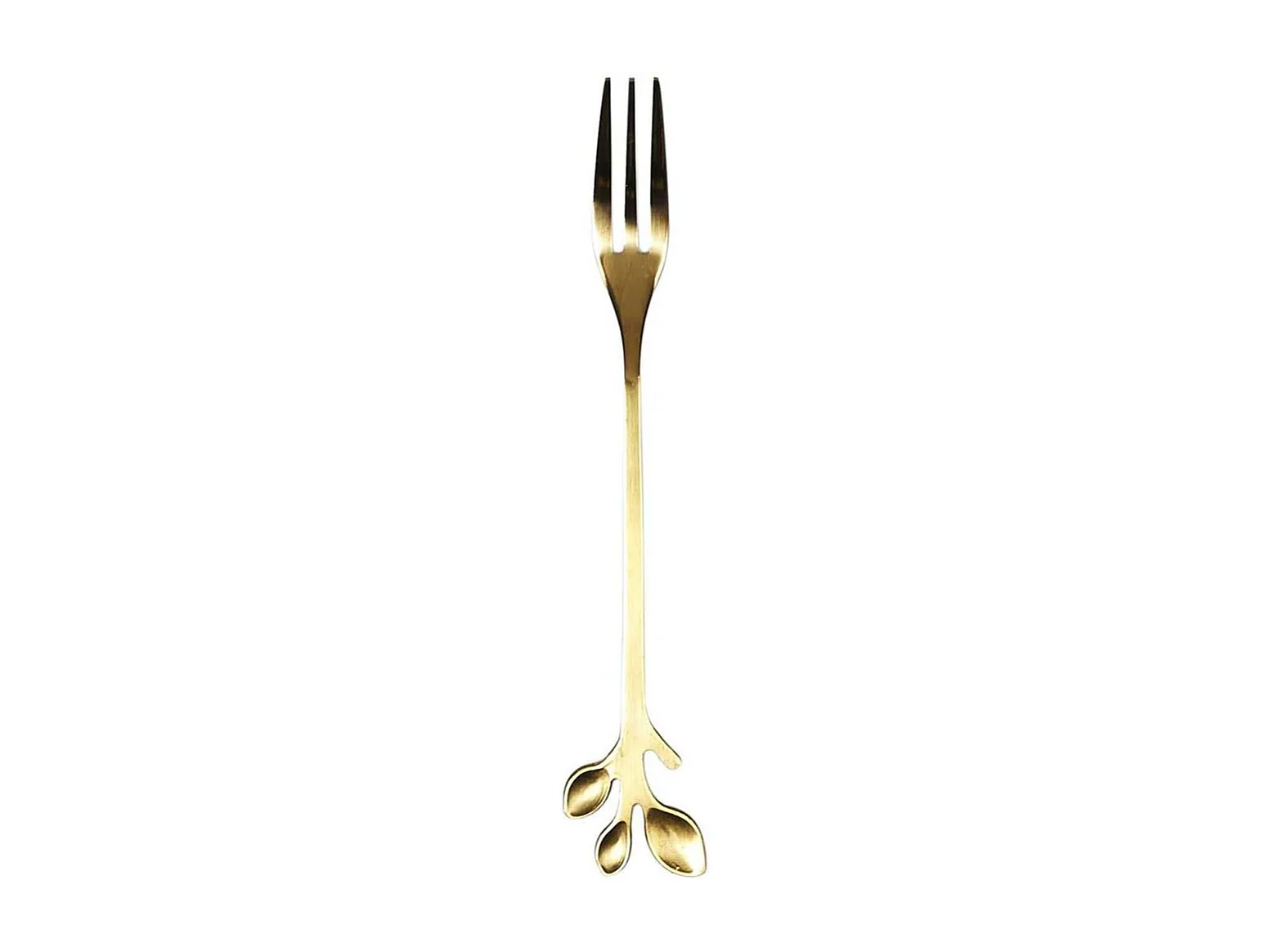 Set de 4 fourchettes à dessert dorées en acier inoxydable style feuilles