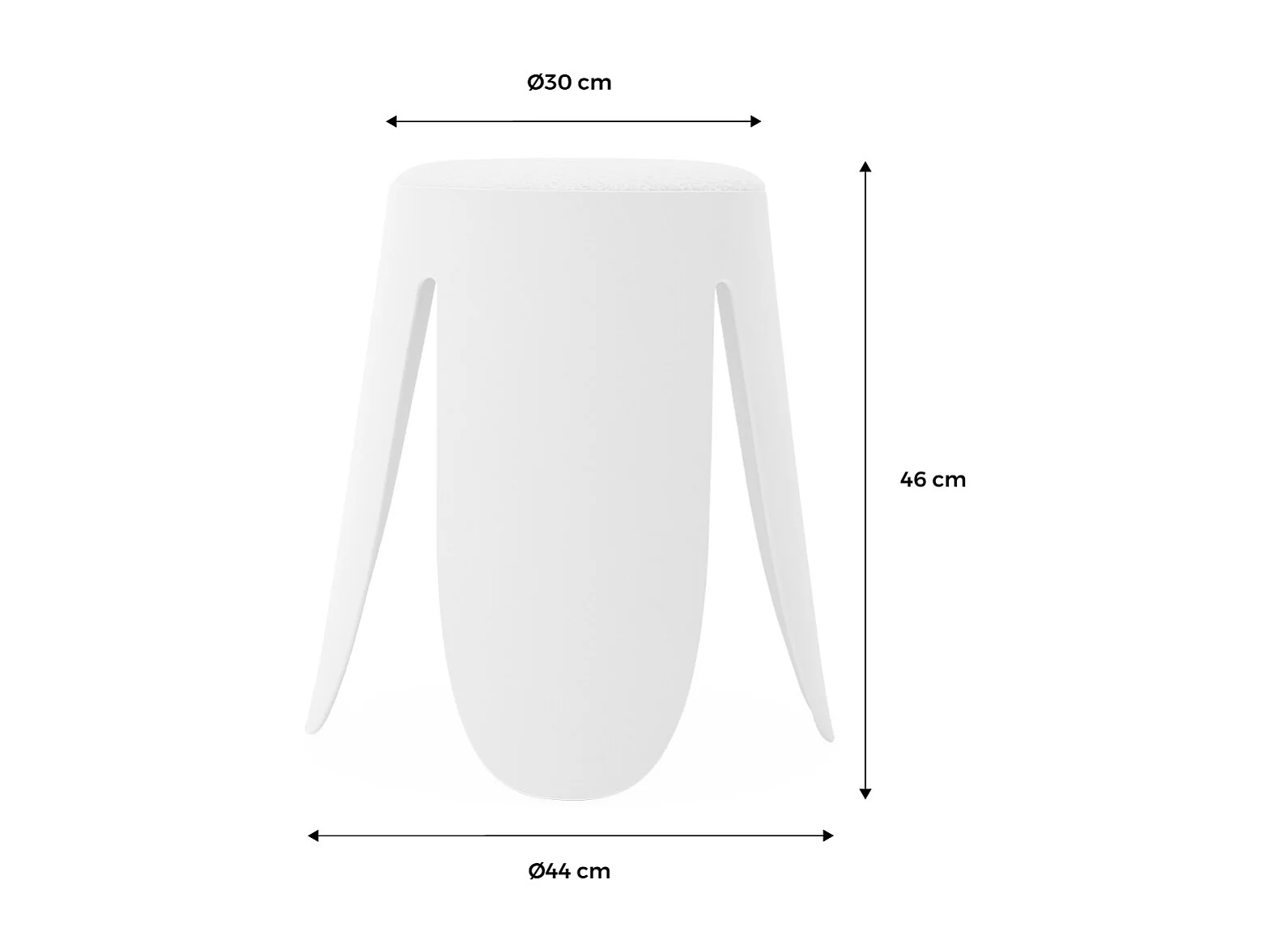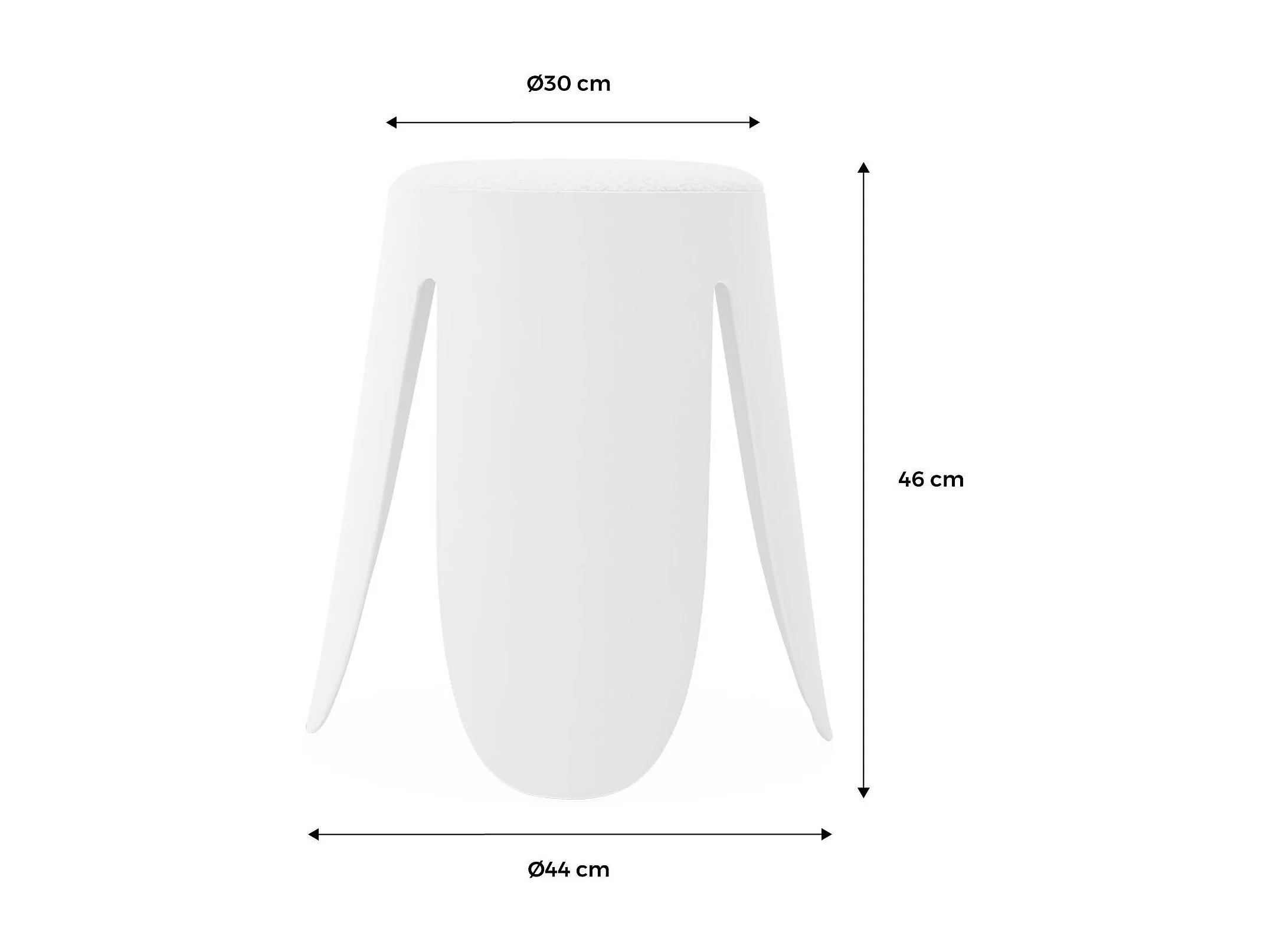 Set de 4 tabourets empilables blancs. bouclette texturée. NIKI. Ø30 / 44 x H46cm