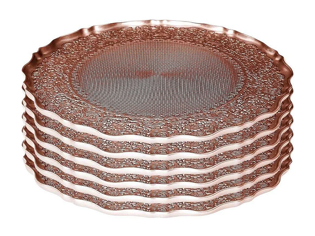 Set de 6 assiettes à dessert en verre motif ethnique teinte cuivre (Ø21 cm)